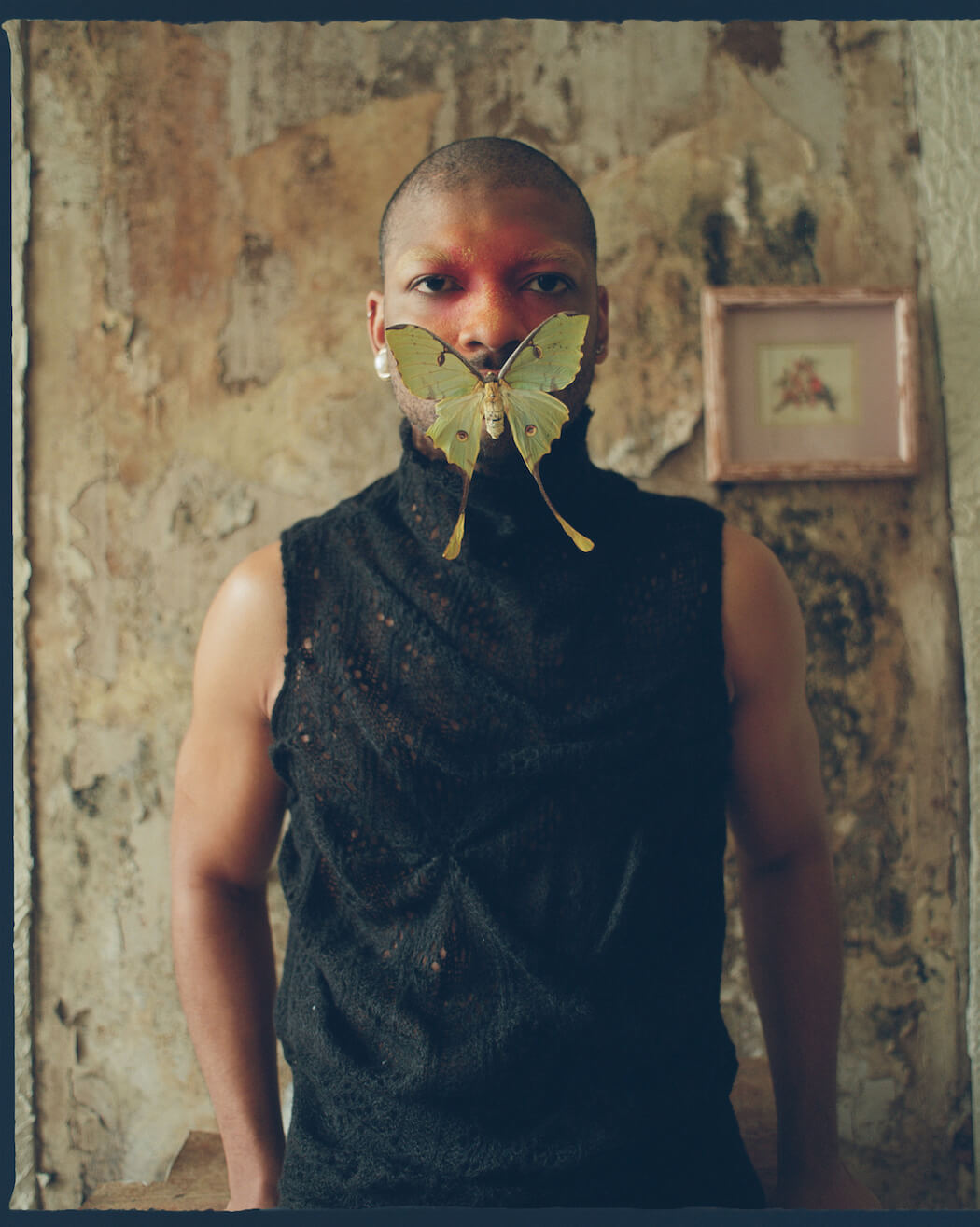A KALTBLUT exclusive editorial and film. Salvadoran fashion photographer Kevin Alexander photographs Brooklyn based musician Blake Fusilier. NEARC-TIC, a fashion story shot on film using a medium format camera, inspired by the beauty of metamorphosis and the colours of the Luna moth. A reminder of the importance to find the balance between light and dark, the seen and the unseen.