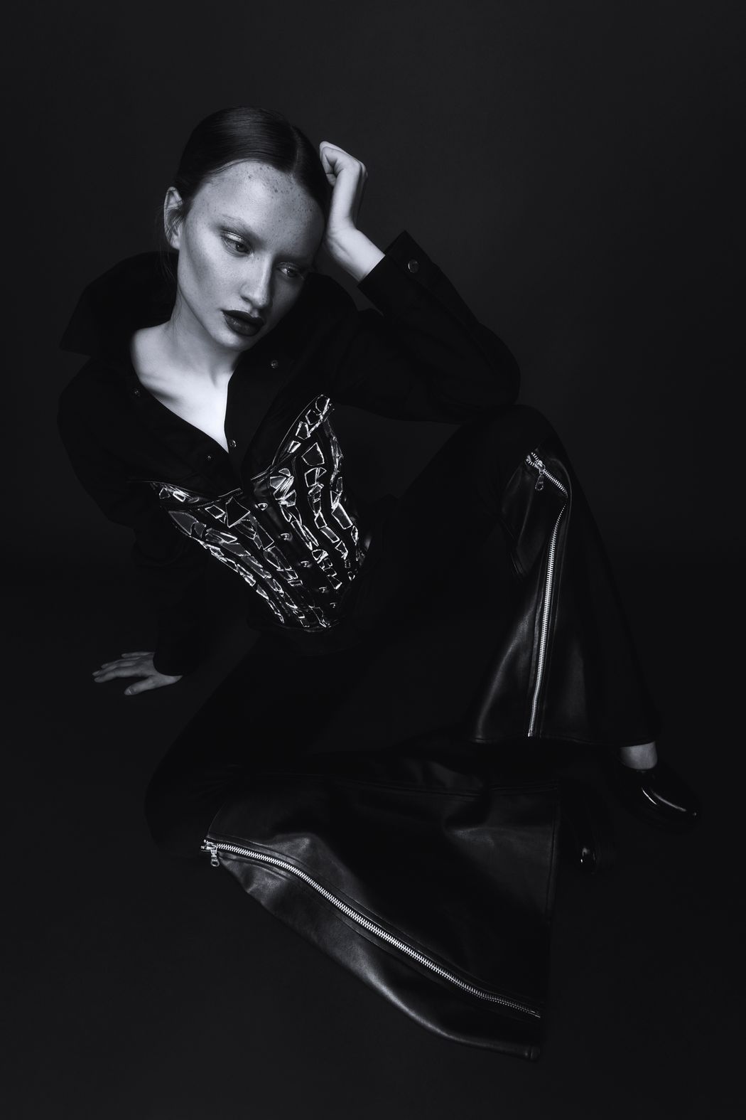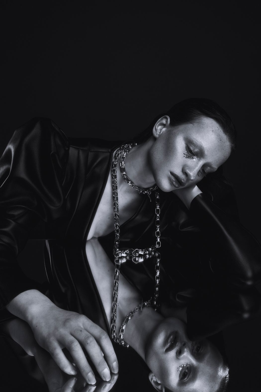 A KALTBLUT exclusive. Photography & Retouch by Rosella Fennis. Model is Rebekka van de Putte. Make-up & Hair by Ilja Guepin. Styling by Mert Bereketoğlu. Fashion Brands are Studio.hiem, NvdK Couture, ZARA, Oppo Suits, H&M, Jewelry and custom mirror corset by Mert Bereketoğlu.