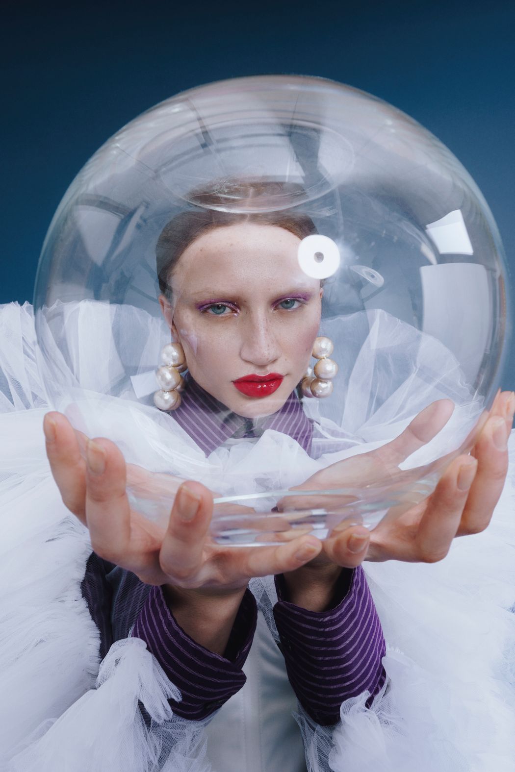 For this series, I got inspired by studying all the different nebulas in our galaxy. These interstellar clouds of dust come in so many different forms and colours that you truly can consider them as art. And that’s what my team and I tried to accomplish with this editorial NEBULA. To capture the feeling of these radiant clouds in an outer space fashion series with the help of (unusual) compositions, hair & make-up, and styling.” *Rosella Fennis