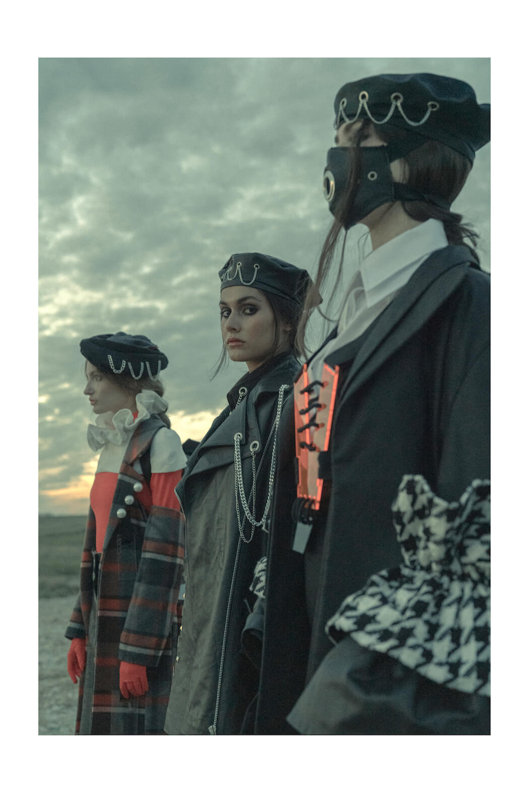 A KALTBLUT exclusive. Photography by The Clic Games. The brand is Némesis. Designer Marta Campos. Models are Judith Casasús signed at Towanda, Carmen Jimenez signed at Fith and Irene Hidalga signed at Agency. Make up by Laura Peñín. Styling by Arrate Ferech.