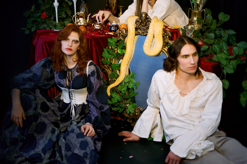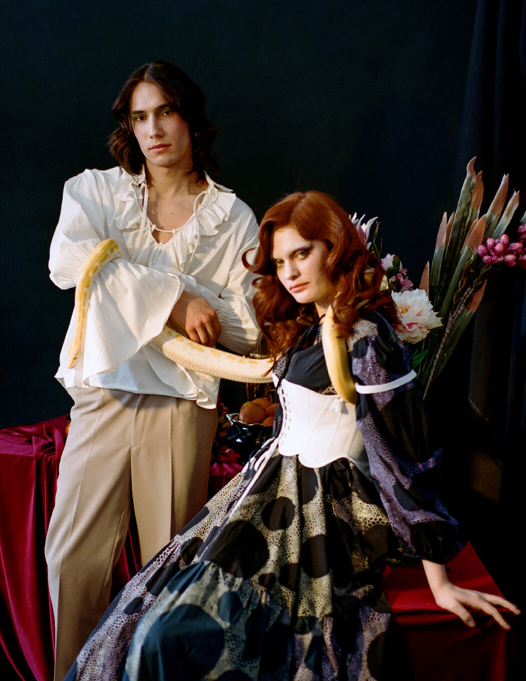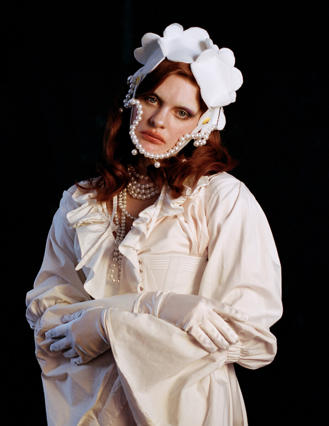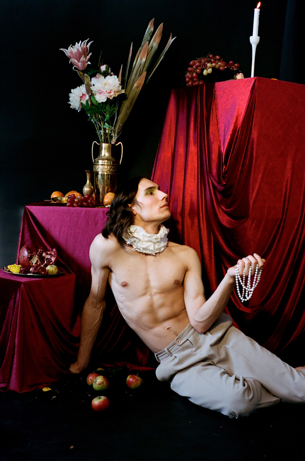 A KALTBLUT exclusive. Photography by Turanseva Yulia. Models are Victoria Hvorostinina signed at Skymodels, Maxim Kolesnikovich, Zaharia Pushkov signed at Twigmodels and Bagreyev Danil. Styling by Elizaveta Belova. Make up by Sonya Kuharenko. Hairstyle by Anastasia Holmanskih. Set design by Anastasiya Vinnik. Brands are Loban, Vozinova Corsets, Korso Jewelry, Dior, Chanel and Vintage clothes.