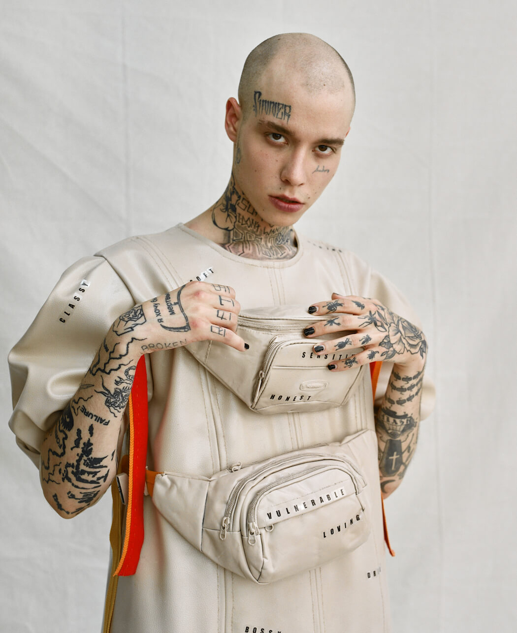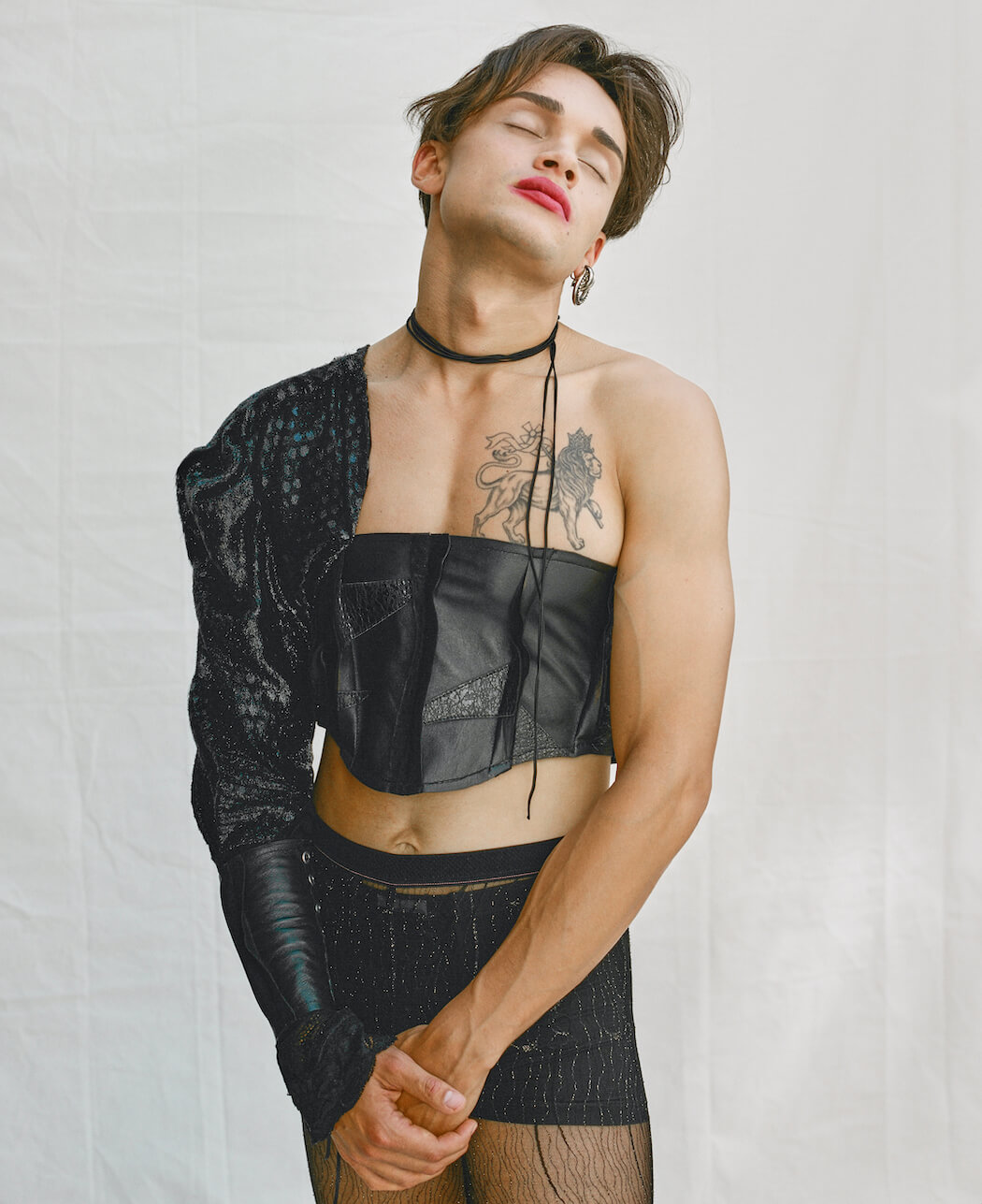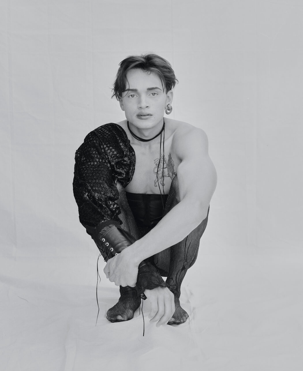 A KALTBLUT exclusive. Photography by Tim Christokat. Clothes designed by Nadine Gurtner. Make up by Susu Babolleh. Models are Mathew, Leon, Samuel, Daniel and Noah. Casting agency dasDeck. Thank you to Making Of, Martina Cerny. Shot on Kodak & Ilford film.