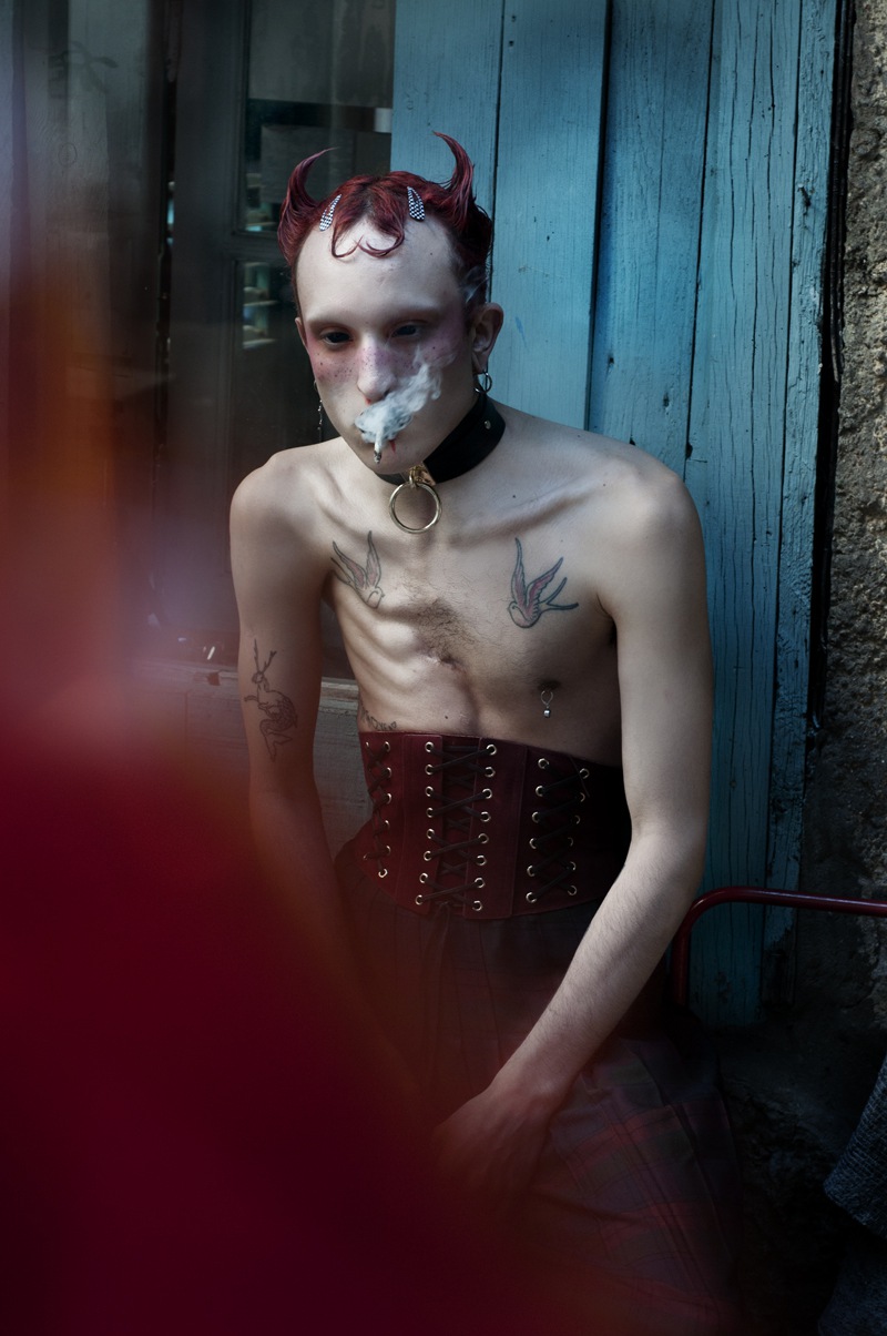 A KALTBLUT exclusive. Photography and styling by L’BON. Model is Saddy Destroyer. Léa Bon (26) is a transgender fashion and art photographer from Argentina, with a unique, personal and spiritual body of work. At a young age, Léa Bon found in photography the means by which she could construct her own small worlds using her imagination. Dreams and fantasies from the past and present are portrayed by Léa Bon’s subjects, which she uses as her own personal dolls.