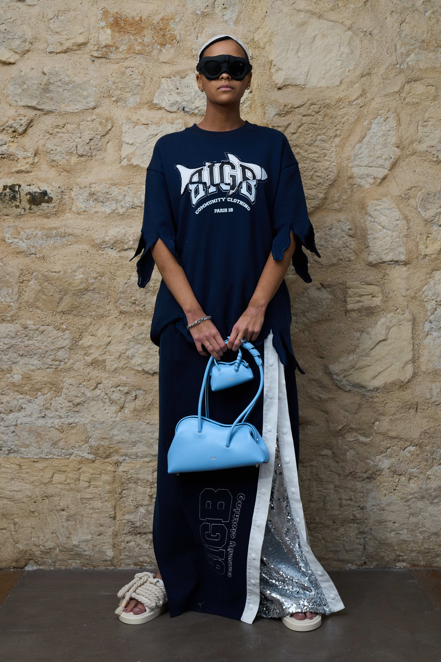 For the new S/S23 collection, 8IGB takes us underwater with fish, especially shark-inspired designs. Using materials from activewear to chiffon and sequences, 8IGB’s designer created a balance between fluidity and stiffness to bring us into his new fantasy. Like in all their previous collections, there is a message behind the designs. This season, they really wanted to raise awareness regarding ocean pollution and the preservation of the creatures living in it.