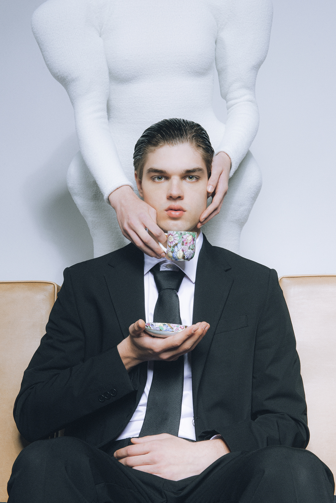 Challenging traditional roles by presenting a male model as the “doll” And capturing intimate moments where the female takes care of and plays with this human “doll”.”