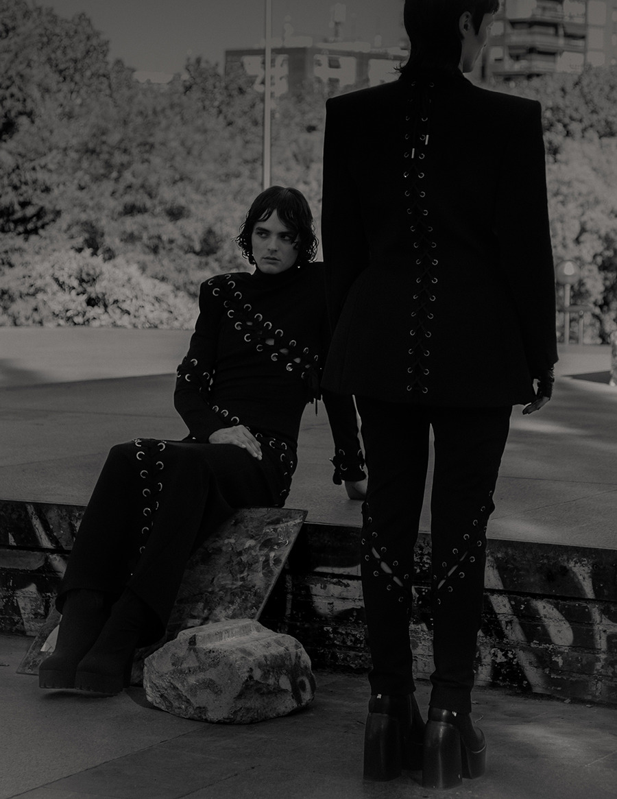 A KALTBLUT exclusive. Photography by Santiago Neyra. Styling by Ana Naveiro. The models are Felipe Vein and Iulia Richea. Make-up & hair Sandra García. Digital retouch Louie Cobo. Brands used are Visori, Tommy Jeans, Tamara Press, Adrian del Maestre, Beltho, Jorge de Álvarez, Karl Lagerfeld, Sampedro accessories, Ana Locking, Marni, Balenciaga, Margiela, New Rock, Naked Wolfe.