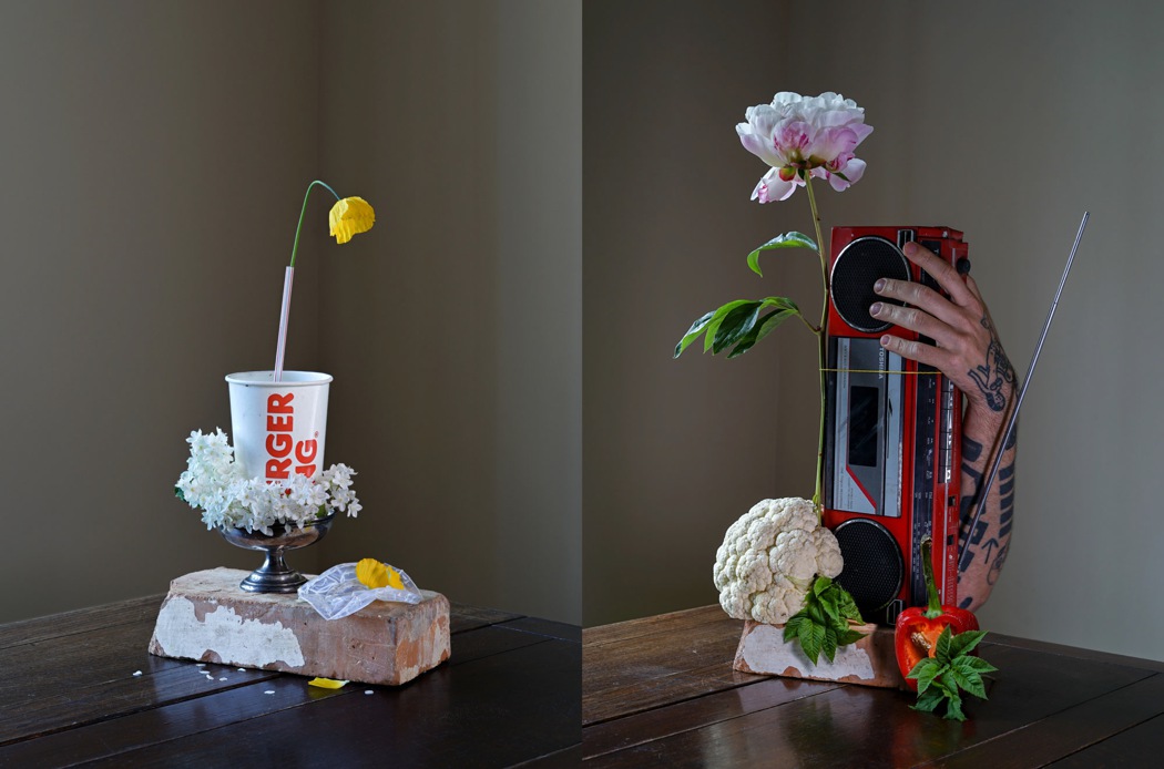 In a way, you can say that the project is a celebration to the ordinary. To see the beauty in everyday mass-produced objects. Flowers and vegetables are combined with food and random objects. Everything is beautiful. Nothing is sacred.”
