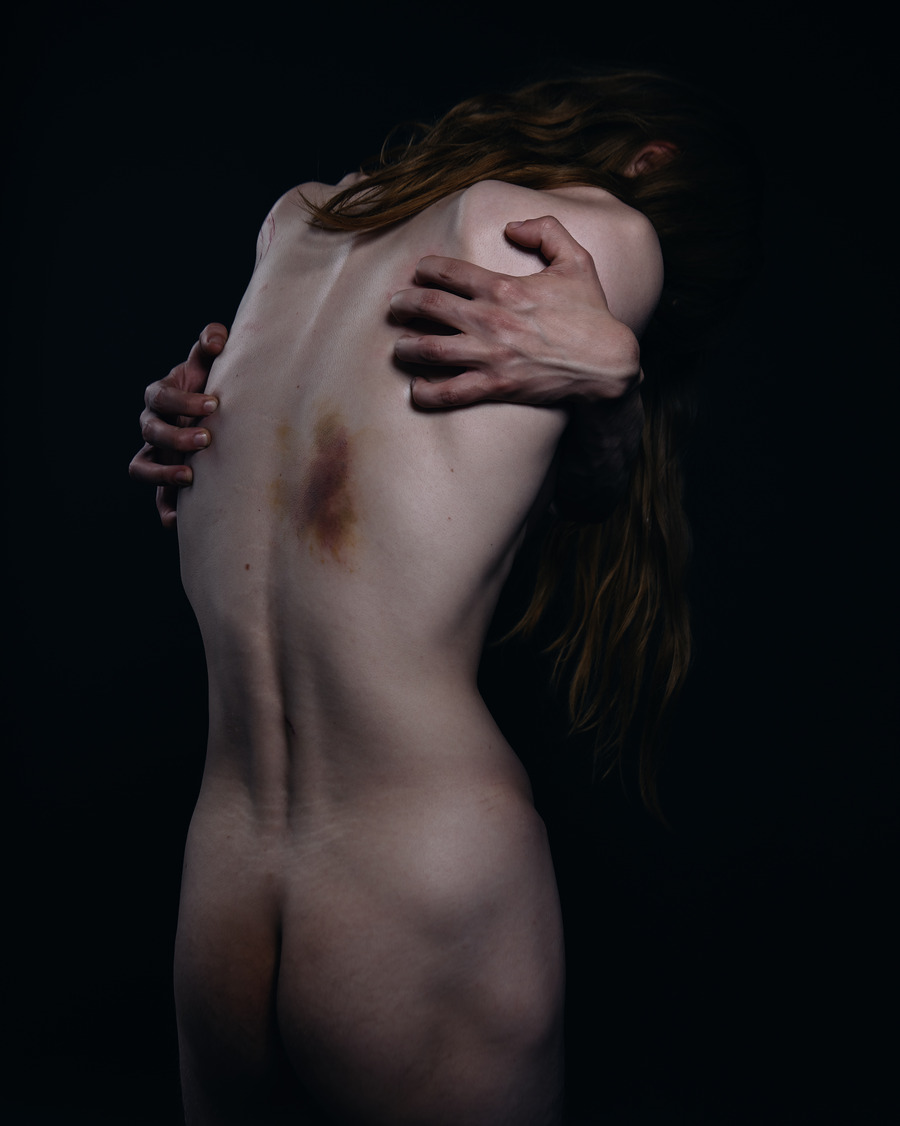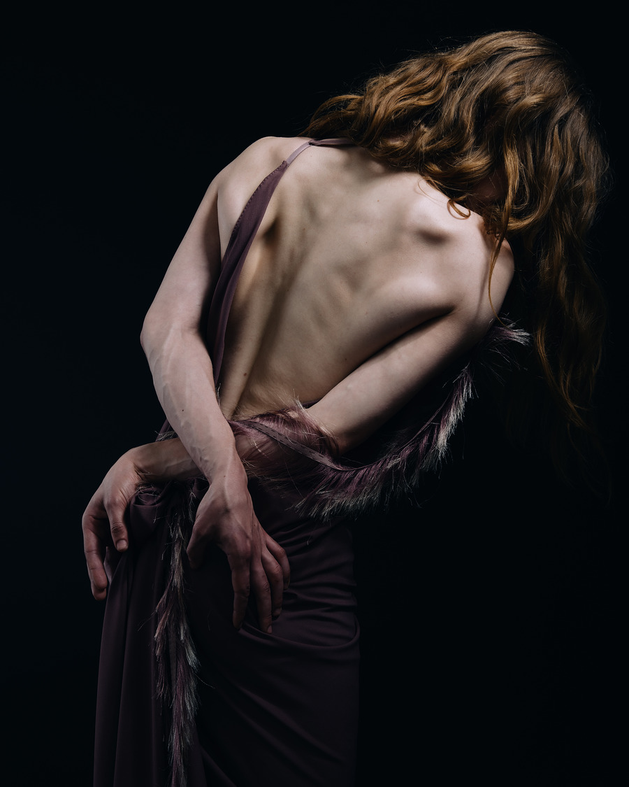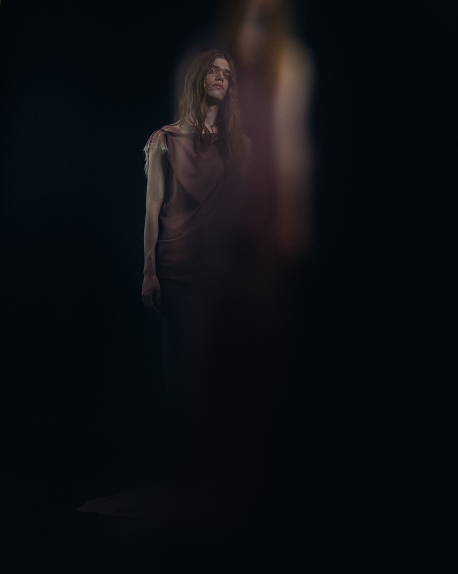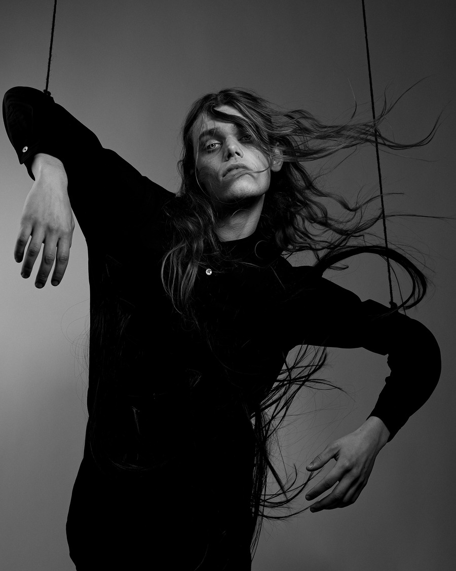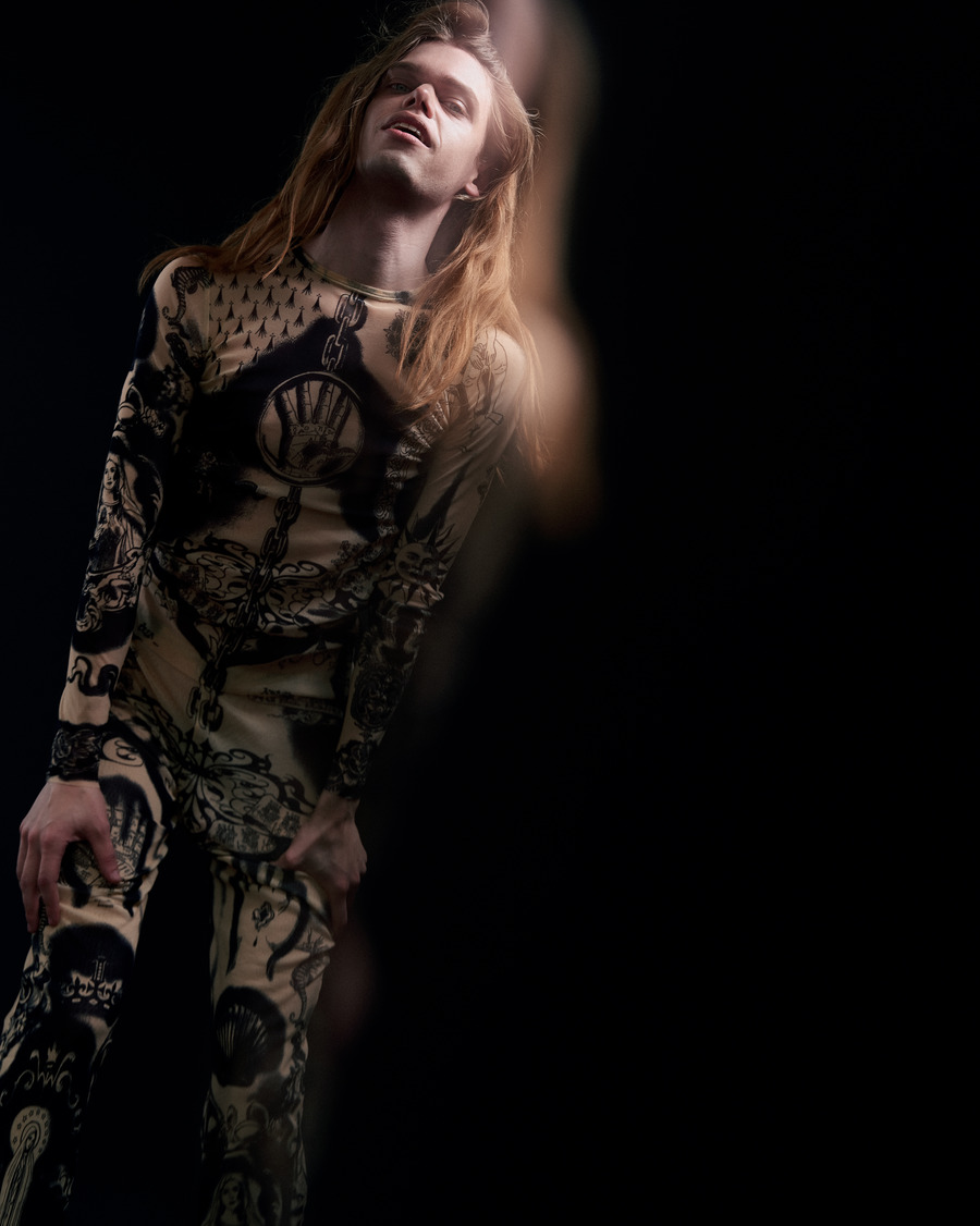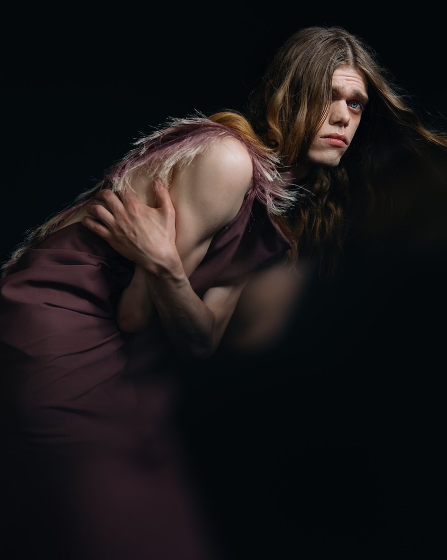 A KALTBLUT exclusive. Photography by Lavina Solo. Creative Direction & Model is Caleb Budd at Crawford Models. Art Direction & Styling by Iryna Li. Hair & Make up by Dana Arcidy. Fashion Brands used are Ottolinger, Diesel, Jean Paul Gaultier, Corban Harper, Comme Des Garçons. This visual story delves into themes of vulnerability and entrapment, offering an introspective lens on the duality of dreams and nightmares.