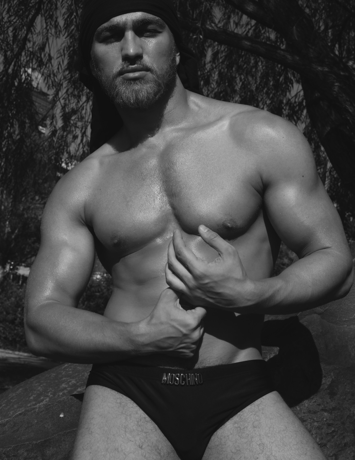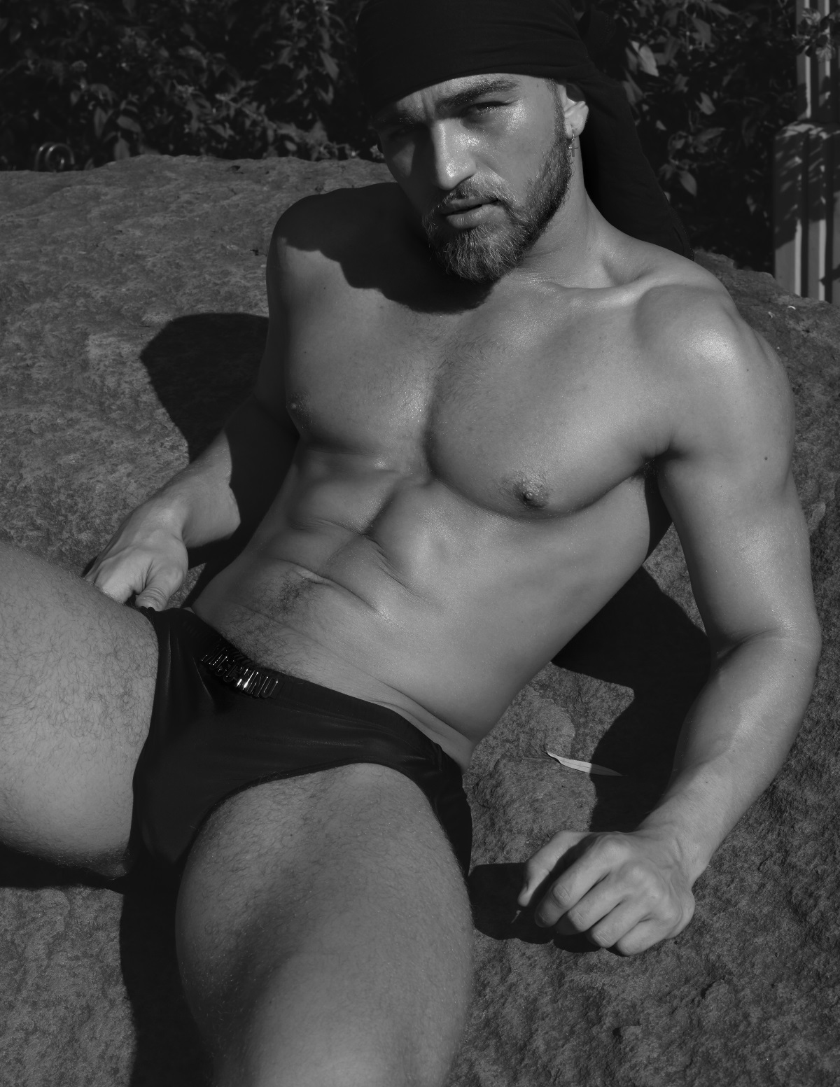 Male model and eye candy Nikolas K. Lensed by photographer Marco Ovando for LoveSexo. Swimwear by Moschino and others. [themoneytizer id=”16405-1″]