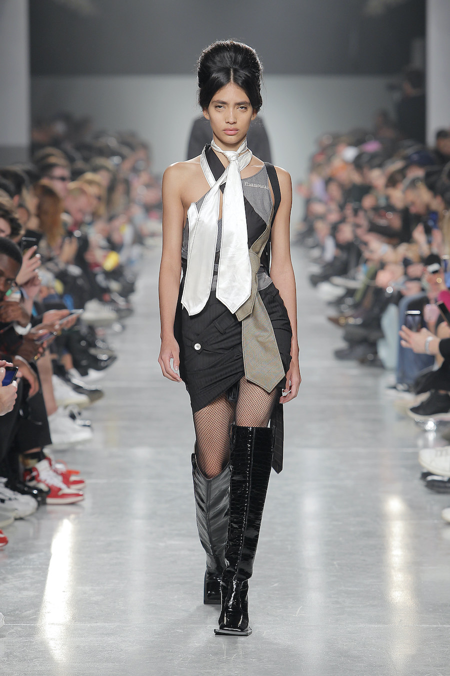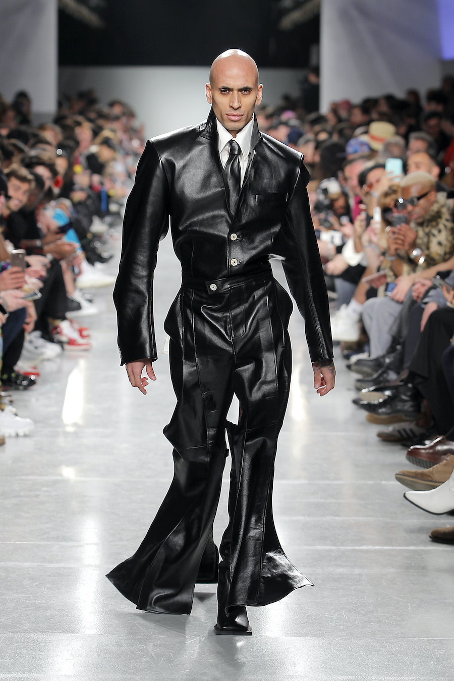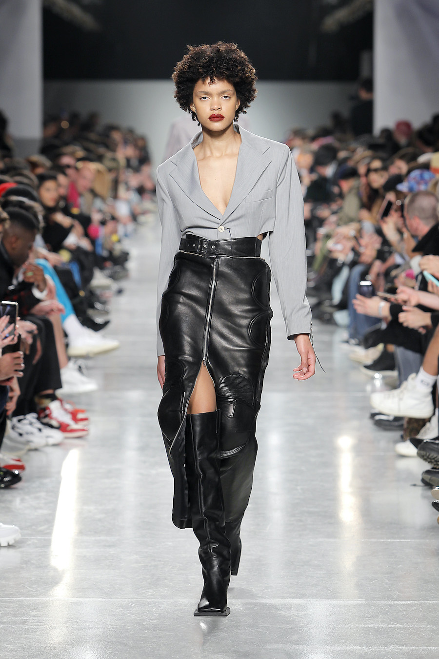Melting clashes and contrasts into new shapes that are extremely masculine, extremely feminine and everything in between. A threesome of leather motor suits, French corsetry and pinstripe tailored suits.