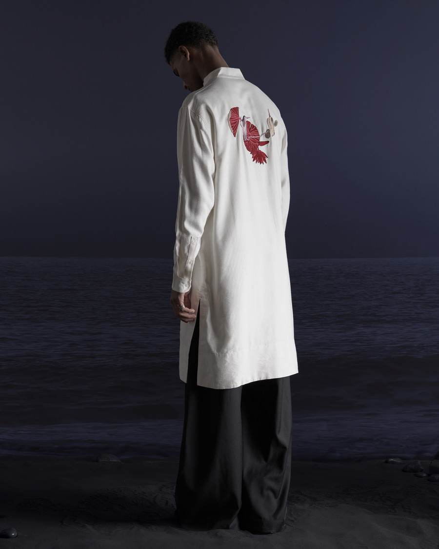 No Grey Area launched their F/W2023 collection “Neithal”, continuing the brand’s heartfelt tribute to authenticity in South Asian cultural representation this season in depictions of nocturnal flora and fauna of the Madras beach at night, taken from Sangam Literature. Kashmiri heritage is interwoven through the collection, with colours taken from Kahmir rugs adorned with Aari, Zari and mirror-work hand-embroidery and handloom pashmina fabrics. Under the Creative Direction of Founder Arnav Malhotra, No Grey Area is an exploration of cultural ancestry – a homage to the past, presentation and future, and a representation of vibrant, self-reflective, modern Indian design.