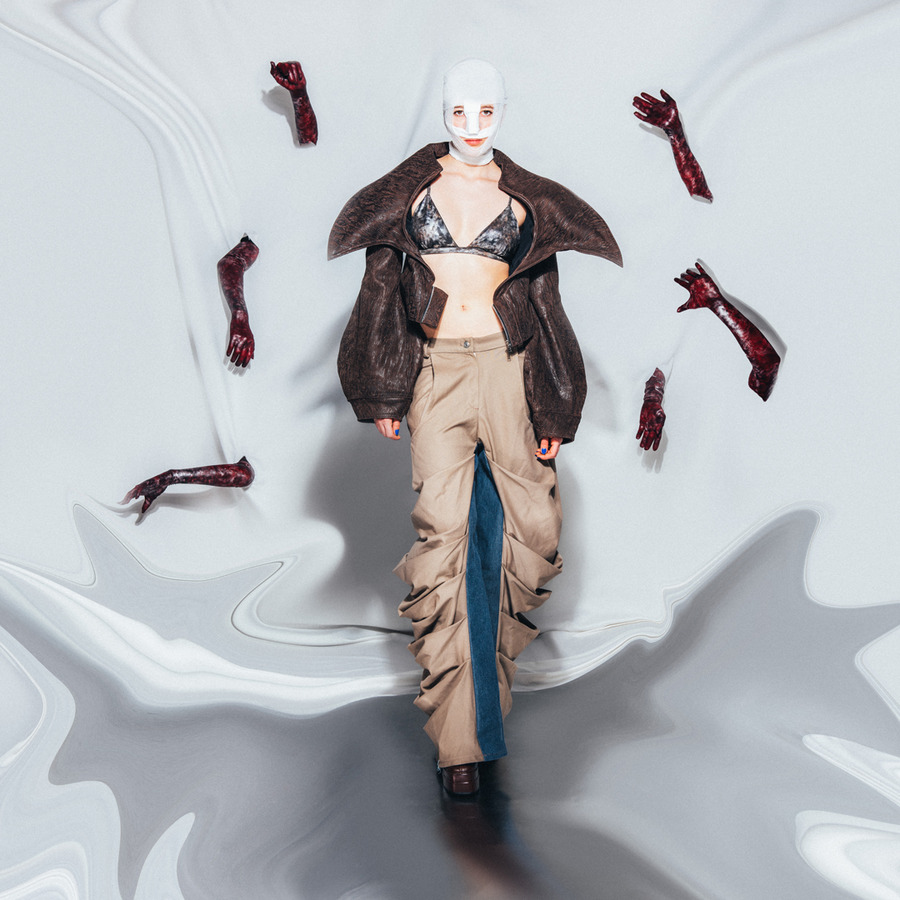 Ionut’s creative drive stems from a unique blend of pop culture, feelings, and emotions. Fascinated by the darker aspects of life and the human mind, he fearlessly explores unconventional themes such as death in his work. His exploration of the Aesthetics of Ugliness, originally a hobby, has blossomed into a powerful source of inspiration for his creations. Ionut’s ultimate goal is to create fashion that resembles a cinematic masterpiece directed by an avant-garde artist, evoking mysterious and thought-provoking emotions within the viewer’s mind.