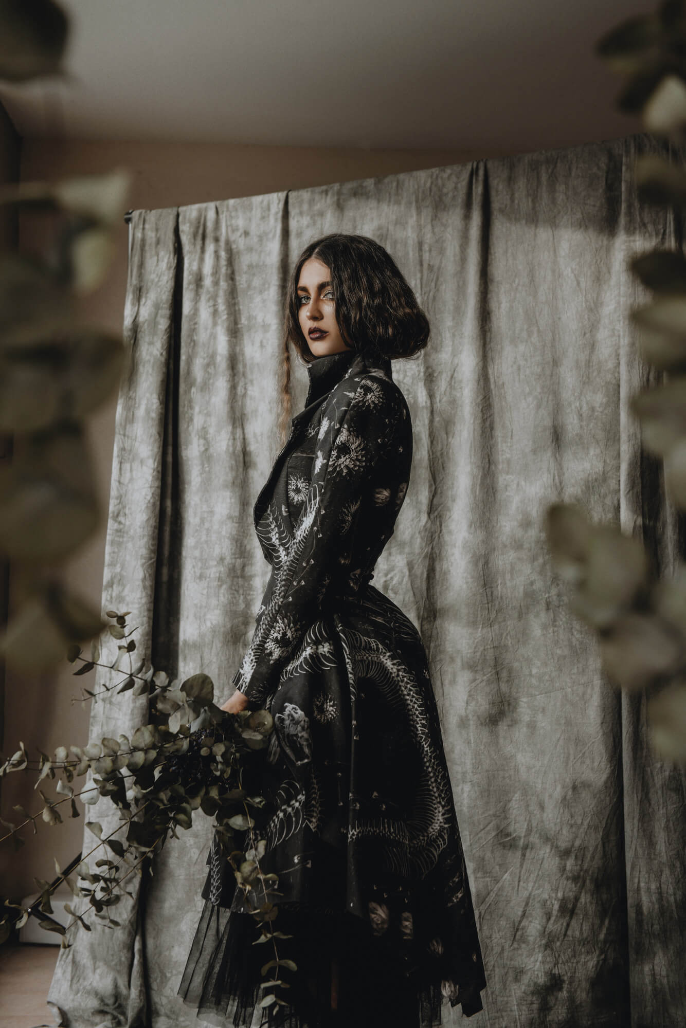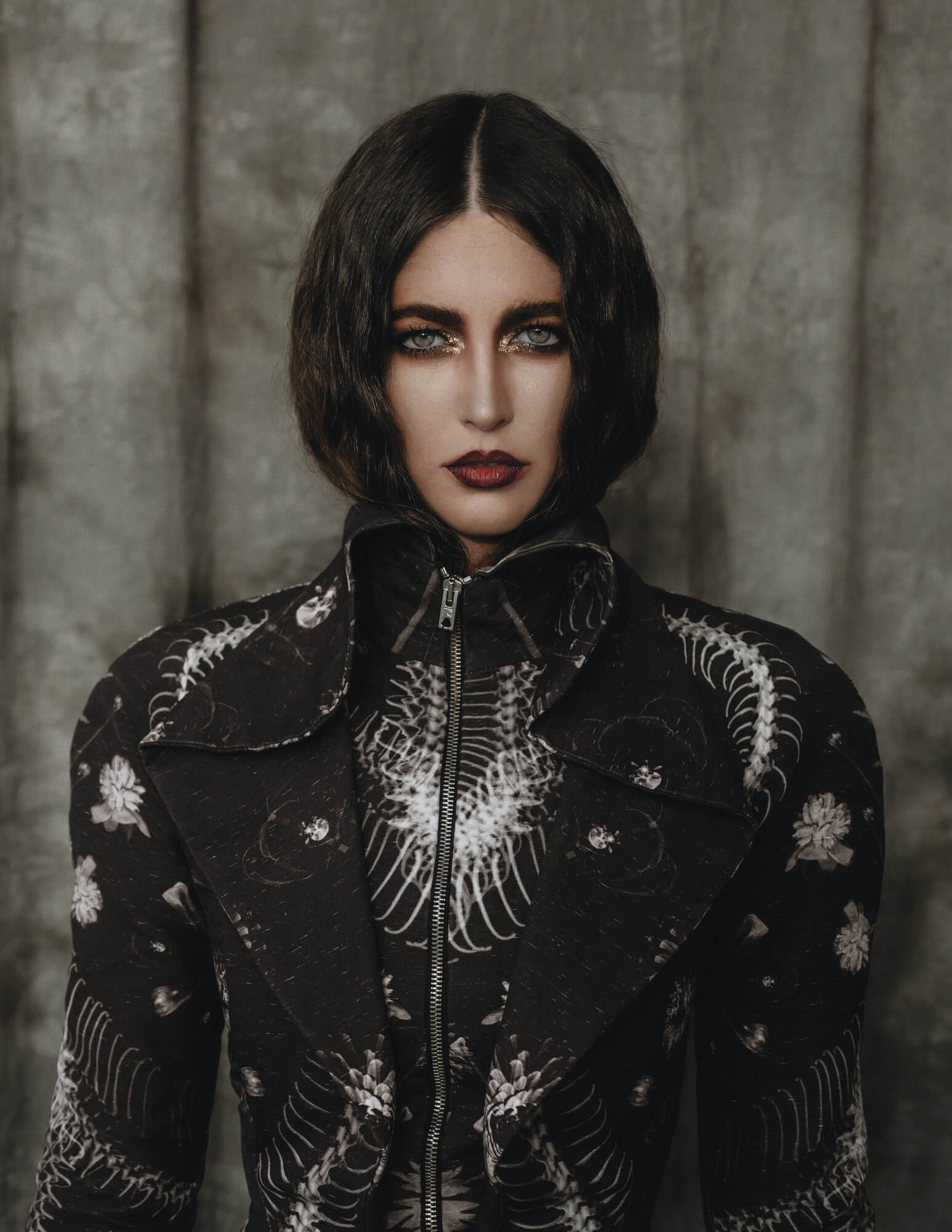The starting point of the garments used in this photo series is the Nibbia Chapel (the now destroyed Chapel of Bones) which was in Valletta, Malta, and which celebrated beauty within the funerary. The interior treatment of the architecture within the crypt of the chapel was overwhelming, in its integration of human remains to honour the sacred. Translated into the garments as a series of exoskeletons and externally buttressed corsets, the references are brought to life as if they are organic bodily transformations.