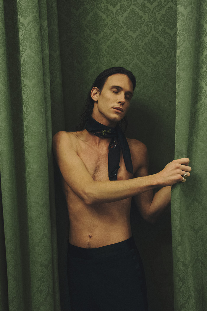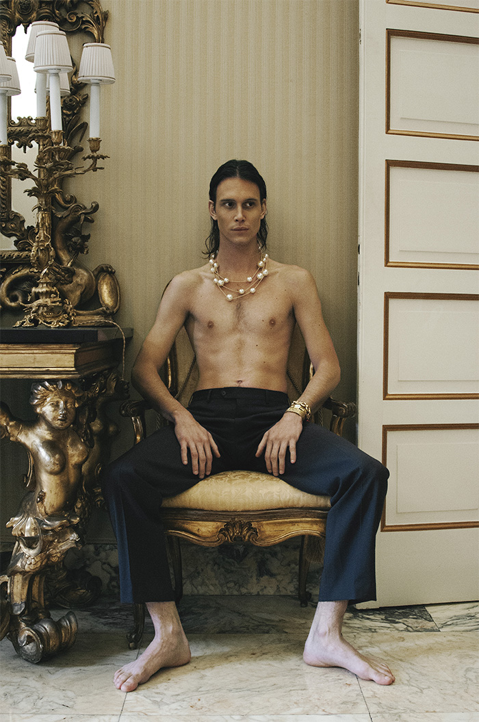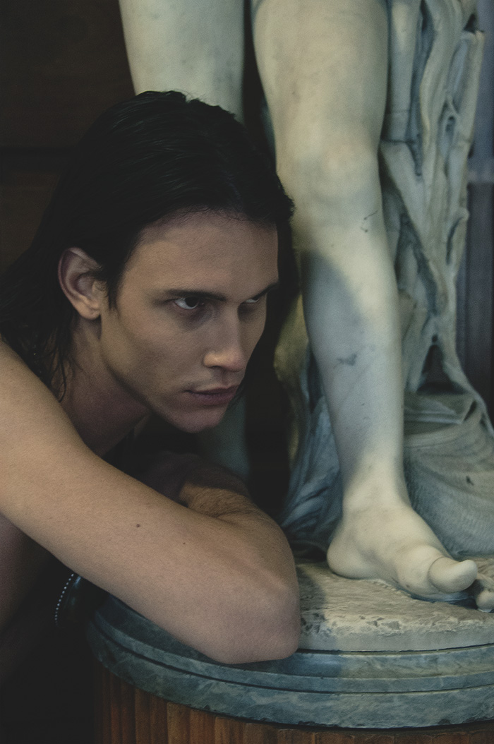 A KALTBLUT exclusive editorial. Photography by Alexia Mariani. Models are Edoardo Sechi at Wonderwall Management and Andrea Mianulli at Joy Model Management. Styling and Art Direction by Lucrezia Trevisan and Diletta Rossi. Make Up and Hair by Matteo Bartolini. “I am a 25 years old photographer half french half Italian born on the French Riviera. I am now based in Milan since 2012 but always traveling. I started to take pictures at thirteen years old, I am completely self-taught. I am very attached to the past. I am fascinated by all that has lived, that time he scored and that’s what we can see in most of my pictures. We made this artistic photo editorial in a very antique palazzo in the center of Milan with two models. The location is the powerful protagonist. We wanted to create a contrast between the very rich interiors and the simplicity of the model’s bodies to make them look like marble statues that come to life, like they are part of it.” says Alexia Mariani.