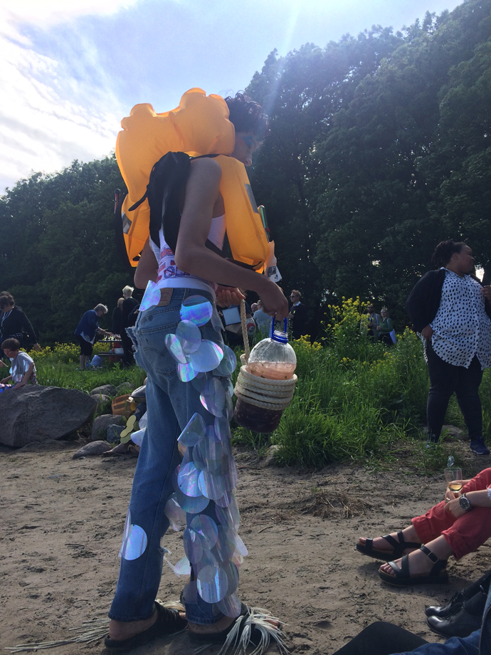 The concept of Alienation unfolds around the nature of Nature and our relationship with it. The works often push us to adapt to the art, as one has to adapt to Nature. So goes the performance of the Norwegian collective Trollkrem. They performed for us a beautiful party on the beach. Dressed as trashy mermaids in old plastic debris and giant shiny sequins sewn on 90’s jeans they embodied the sort of post-apocalyptic dream of a group of beautiful young people surviving on booze and seaweed after the end of the world. Add to the mix a biologist educating the crowd on the various penises of the marine kingdom and I’m sure you want to book your ticket to Moss right away. I was surely happy to be there.