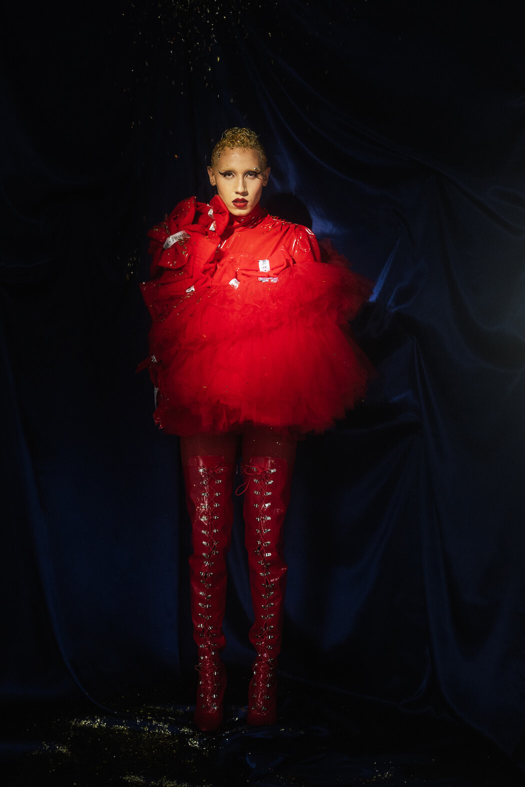 “We chose clichée characters like goth, nerd, macho, sexy chic, candy kid and diva represented by Nataniel Klaus Schuster (non-binary) to underline that you can be anyone you chose to be, there is no limitation. We want to empower people to be themselves, no matter what.”