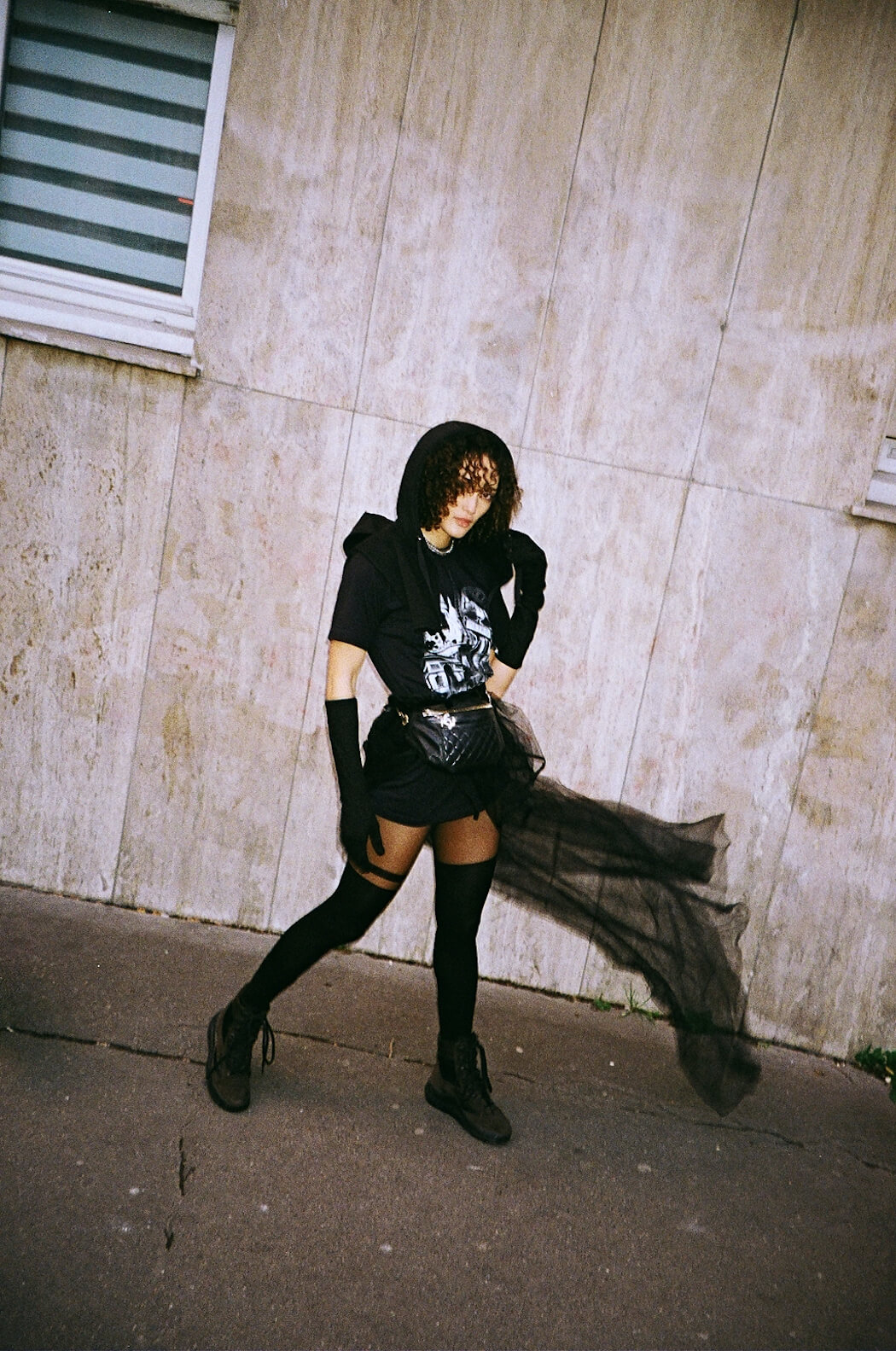 A KALTBLUT exclusive. Model is Carole Lheureux. Photography & Style by Marie Lourier. Brands are Alexander Wang, Uniqlo x JW Anderson, Naked Couture, Dog Rose, Dickies, Bogema Leningrad, Recycle Store, Urban Outfitters, UGG x Y/Project, Chanel, Yeezy, Alyx, Fatality Moscow.