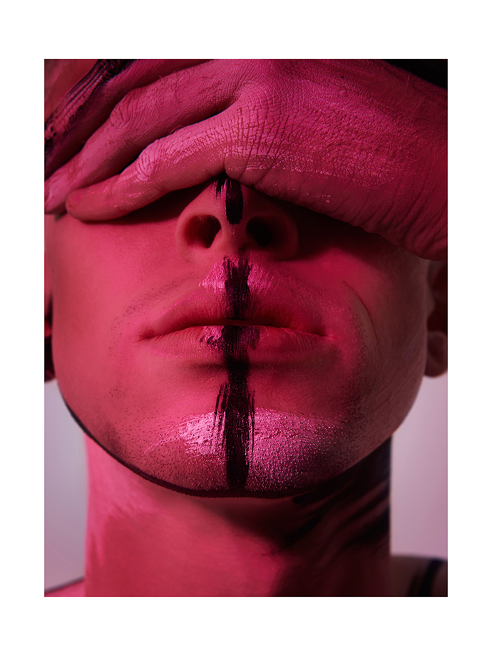 A KALTBLUT exclusive. Photography by Kim Lang. Model is Jordan Charles signed at Nii Agency. Make-Up by Valérie Reding. Manifesto: “For this body of work, I focussed on combining the strengths of my personal work with the strengths of my collaborator, Valérie Reding. Being a visual artist, my work often evolves around the idea of self- awareness and psychological identities. Usually working with strong colours to underline these ideas, and taking the subject from reality into a surreal, unnatural context. By merging these values with the Make-Up and Performance Artist Valérie’s own focus on performativity and gender identities, the result speaks about the idea of addition through life. The subject, Jordan, (Shot by Tim Walker for i-D, Nick Knight, part of hyped London agency Nii…) by being an albino black model represents the human as canvas in its most pure and untouched form. The idea behind this body of work is to view the pure and seeing him evolve through a process of addition, questioning the ideas of the true self and in uences through life and society. Shot on LomoChrome Turquoise XR100-400, Ilford and Digital to add an evolving notion of character and personality to the nal piece. Shooting in off colours, and black and white also adds a notion of surprise. It creates the setting around the visual and gives a chance to set the subject into it’s on time, and world beyond the reality it was shot in.”