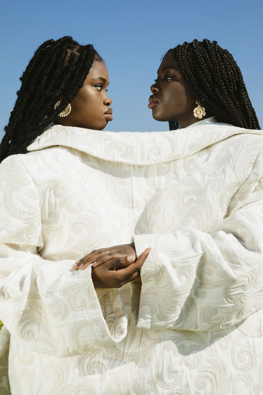 A KALTBLUT exclusive. Photography by Ilenia Tesoro. The models are Astou Mbayee by Visual Tag Agency & Maman Mbayee. Art Direction & Styling by Veronica De Totero. Make up by Gaia Santoro. Fashion by Claudio Renna, Lost in Loops, Le Misanthrope.