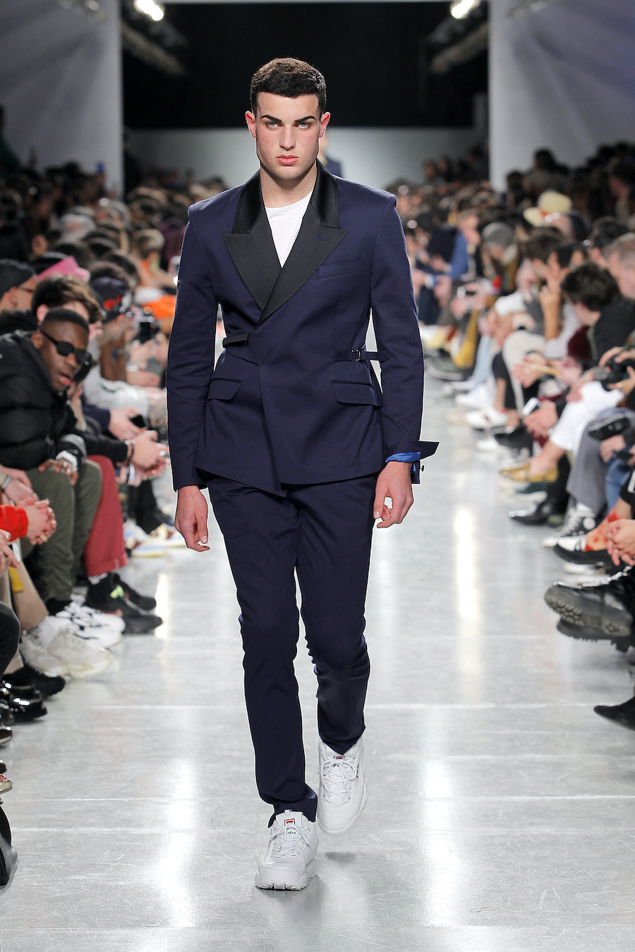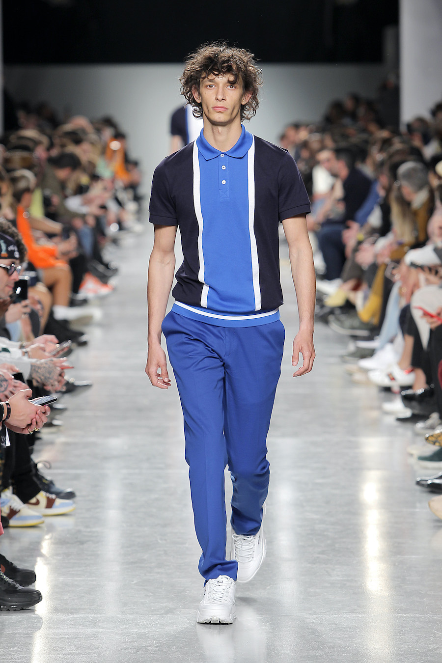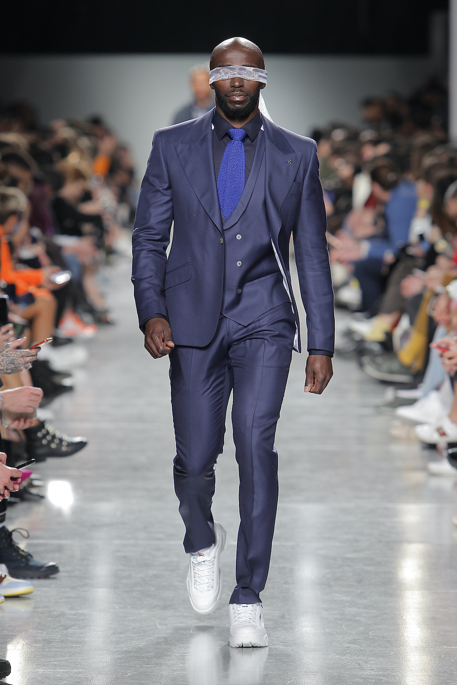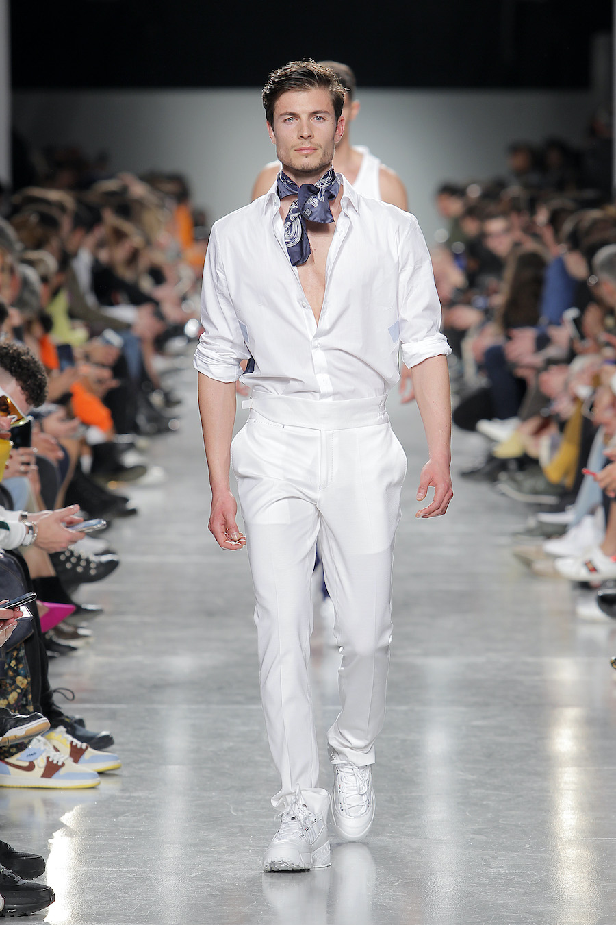 He contrasts formally with details of metropolitan clothing, between lines and silhouettes that are close to the body, with comfortable volume games, challenging scales of proportion of modern urban life. In a palette of navy blue, Sado blue and white, the designer plays with natural raw materials, from wool to cotton, animated by new technologies, guaranteed to be in balance with the world.