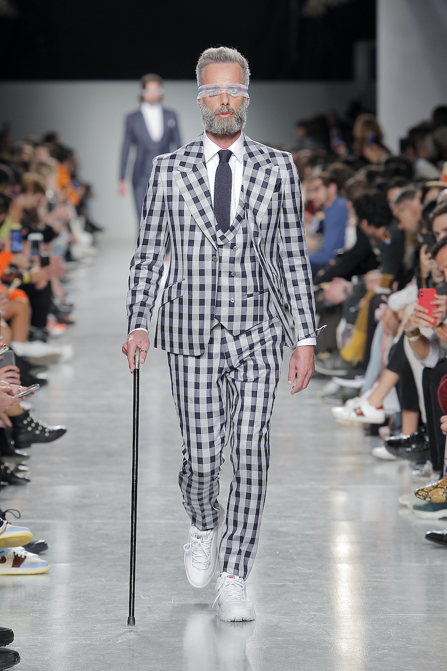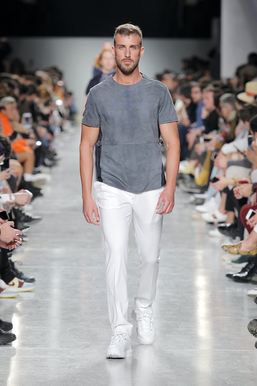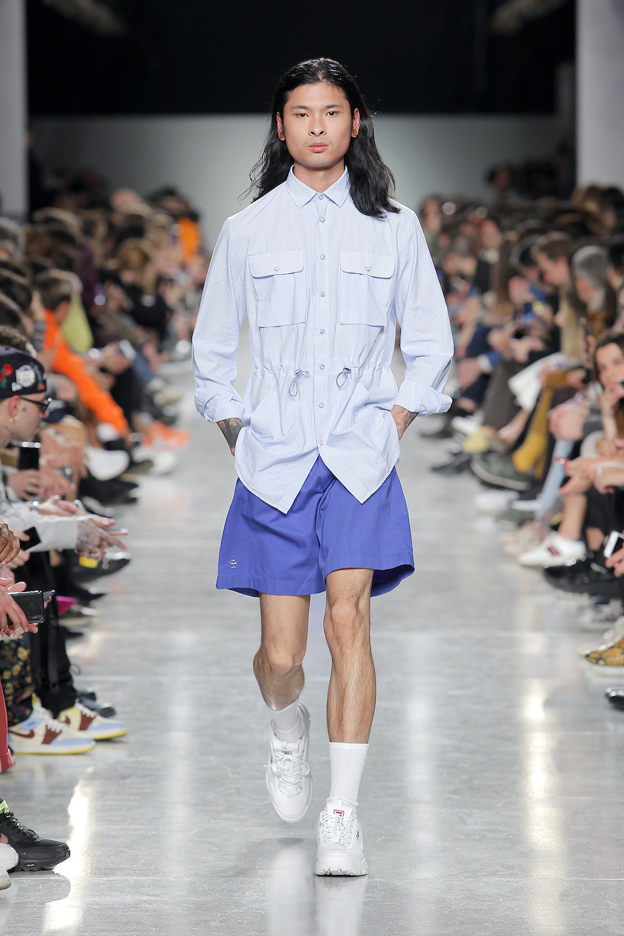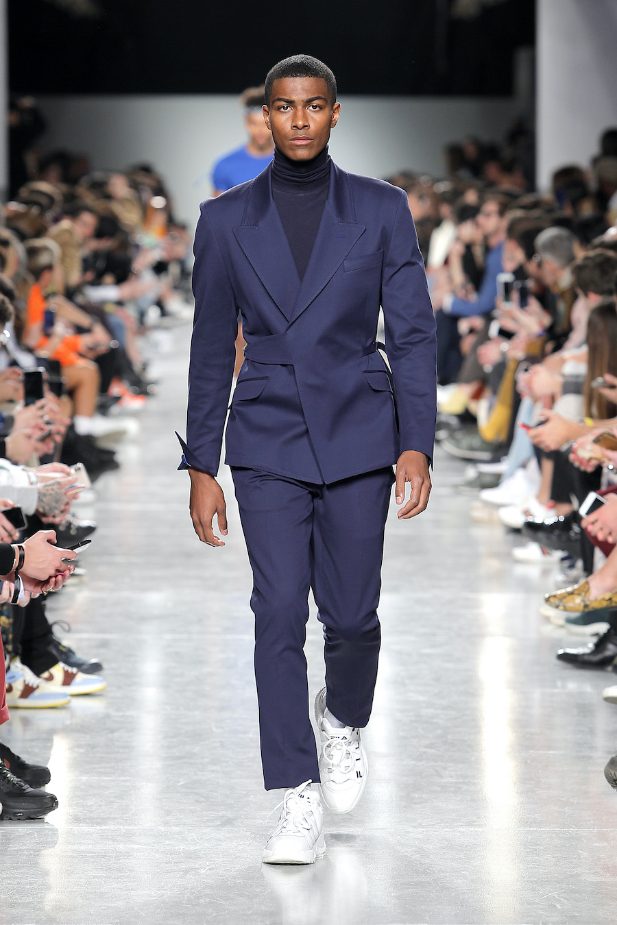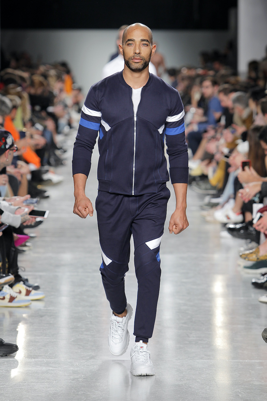 He contrasts formally with details of metropolitan clothing, between lines and silhouettes that are close to the body, with comfortable volume games, challenging scales of proportion of modern urban life. In a palette of navy blue, Sado blue and white, the designer plays with natural raw materials, from wool to cotton, animated by new technologies, guaranteed to be in balance with the world.