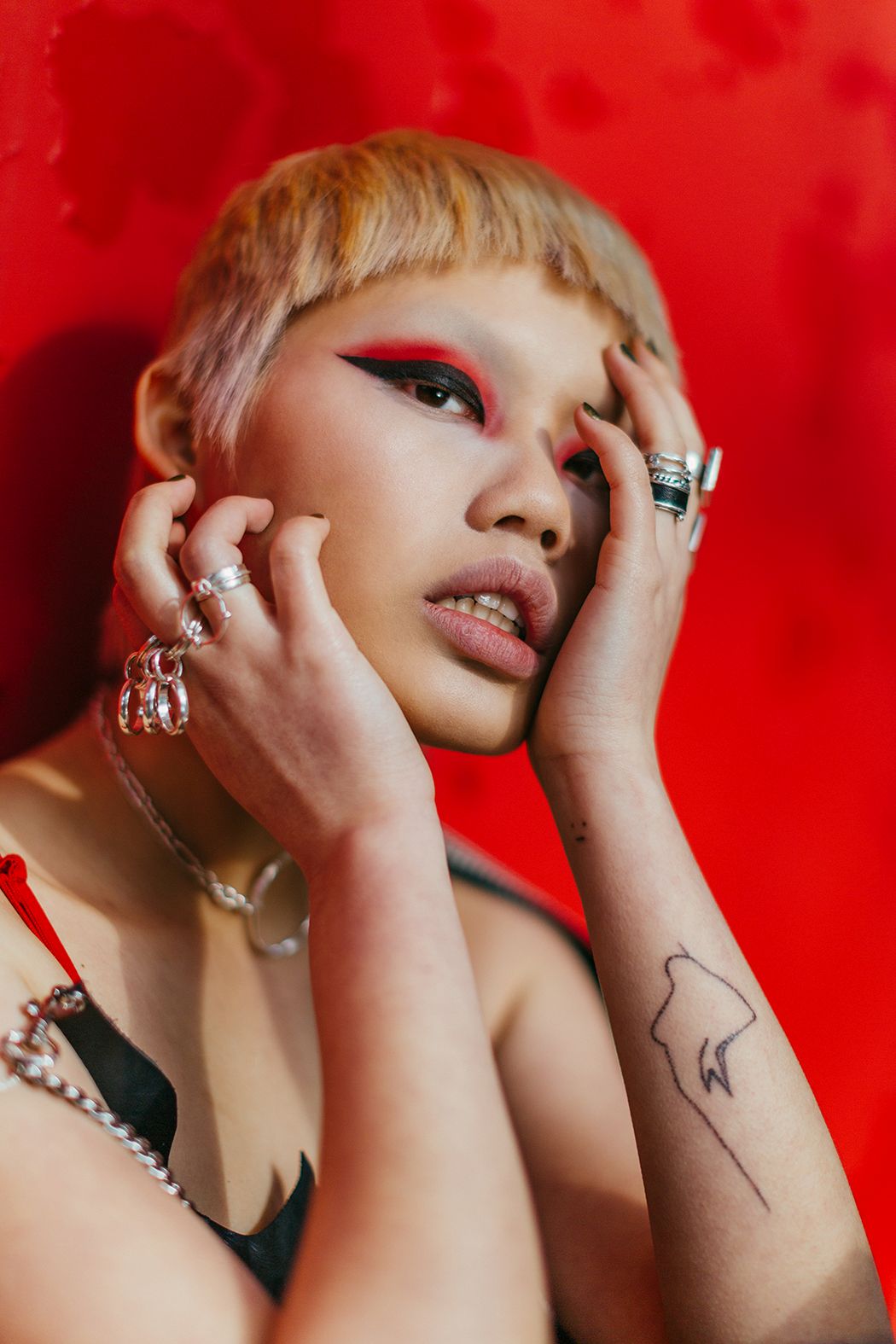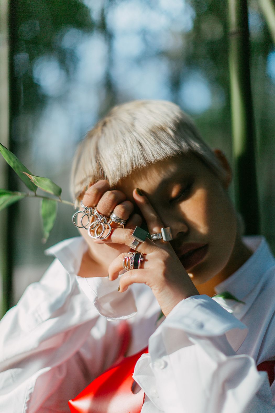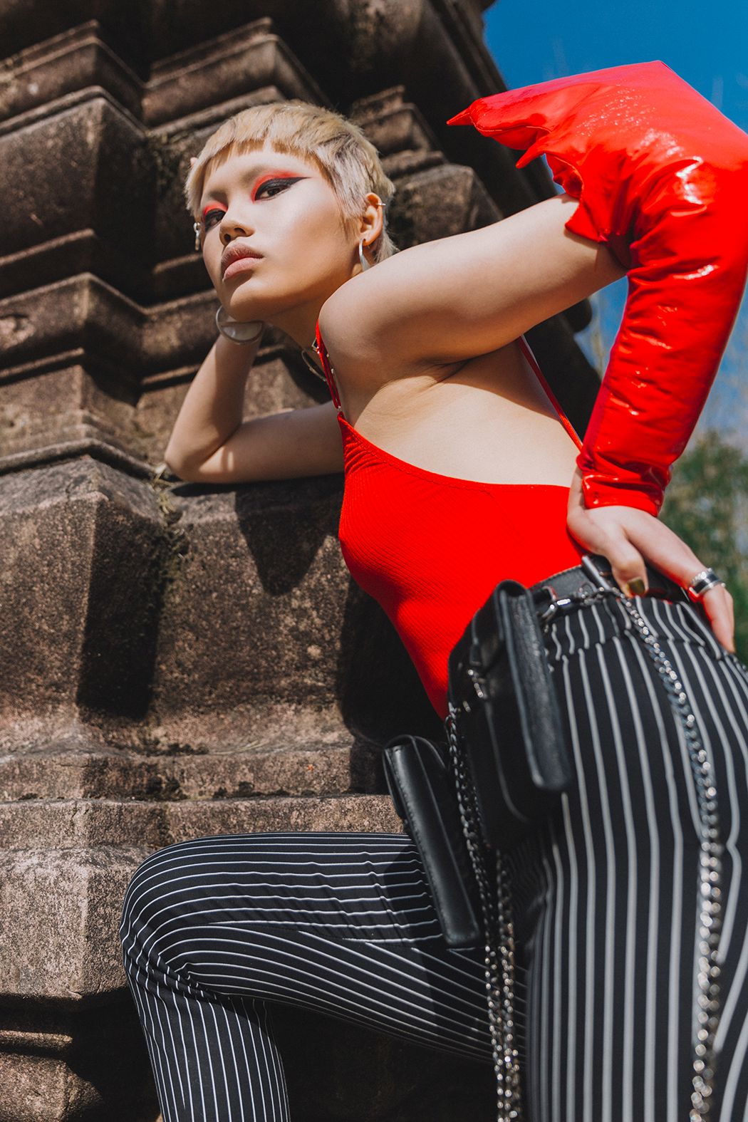 The model is Xiaoyi Qiu / @persona_non_grata74