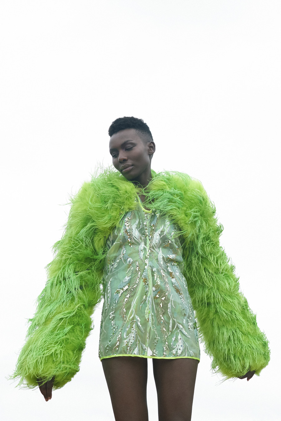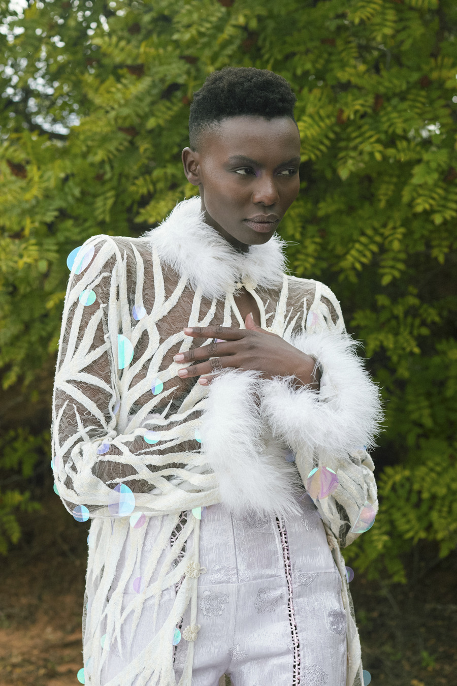His latest work, “NYUMBANI”, meaning “home” in Swahili, is a celebration of the richness of Africa, specifically highlighting the diaspora within the fashion industry. In a cosmopolitan world, where individuals often navigate multiple cultural influences and identities, the concept of home and belonging can take on diverse and complex meanings.