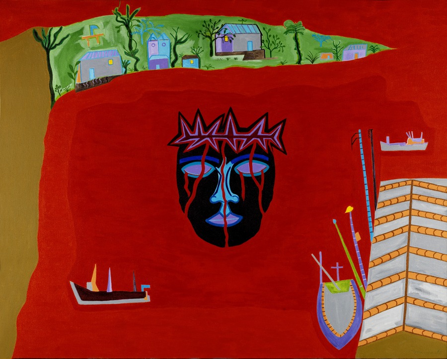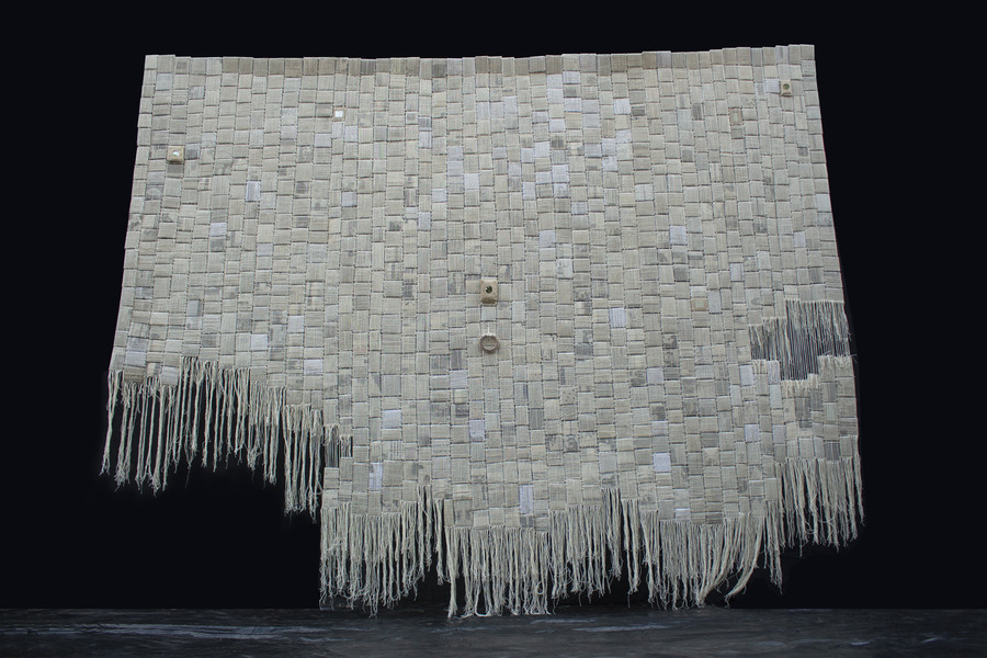 Ana Silva (b. 1969 in Calulo) is an Angolan visual artist who embellishes found material with delicate embroidery to create personal mixed media artworks that speak to the intergenerational trauma She lives and works in Lisbon.