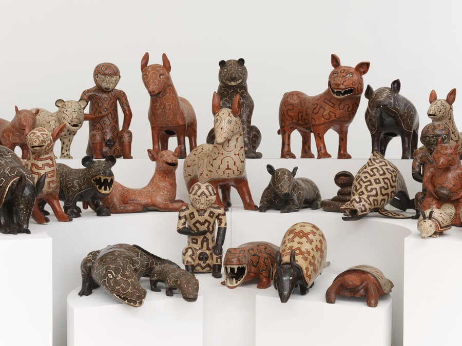 The exhibition includes artworks and media from around the world and from different genealogies and lineages, presenting a wealth of visual and sound languages, weaving and ceramics, body markings, and medical conceptions of the body, in addition to the more familiar vocabularies of artistic expression.