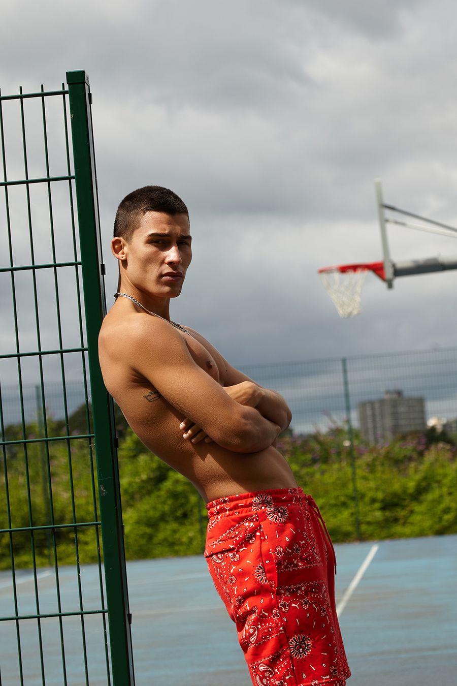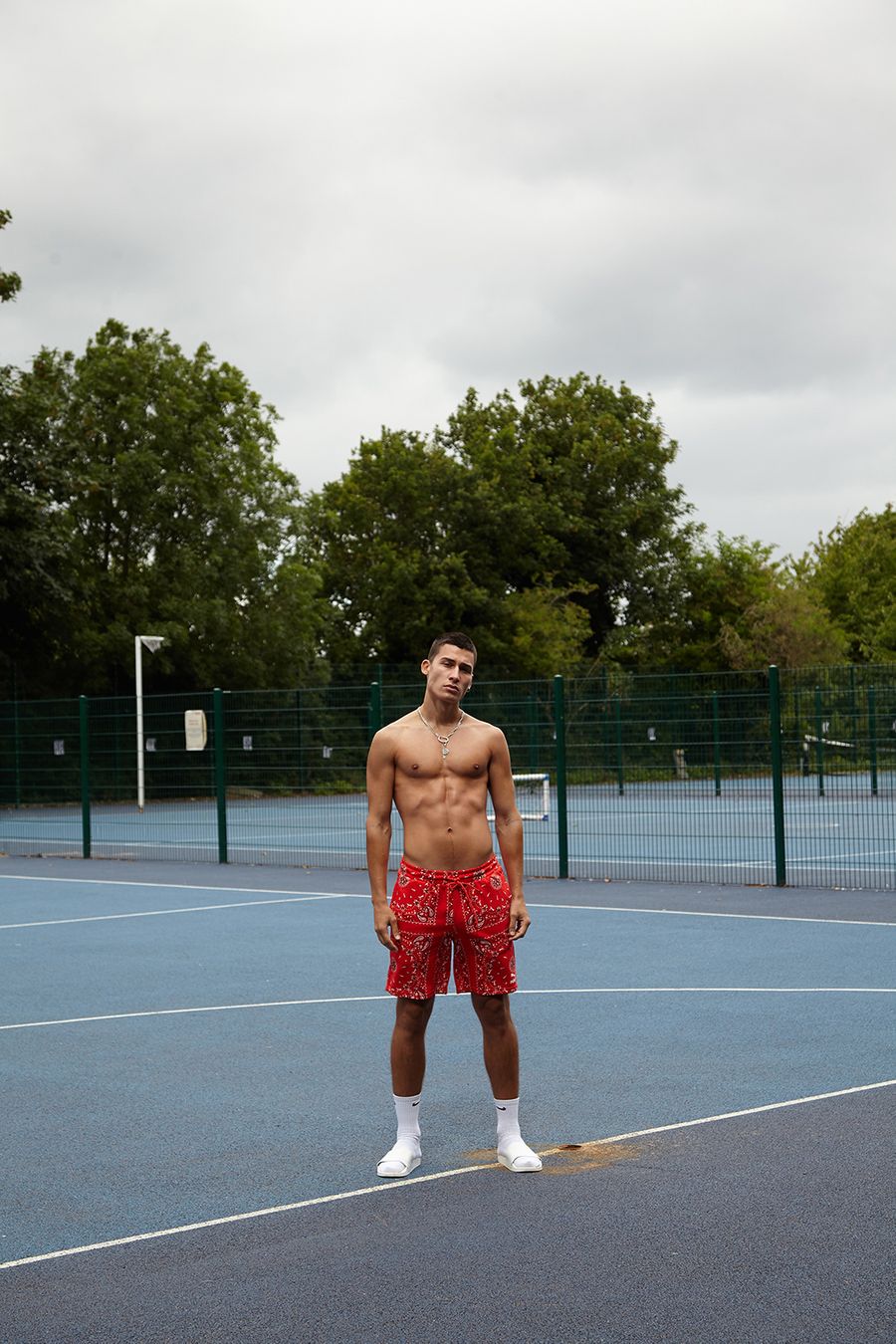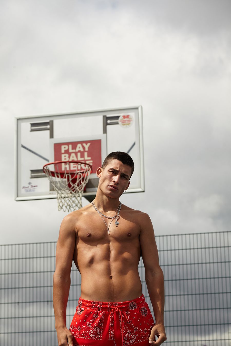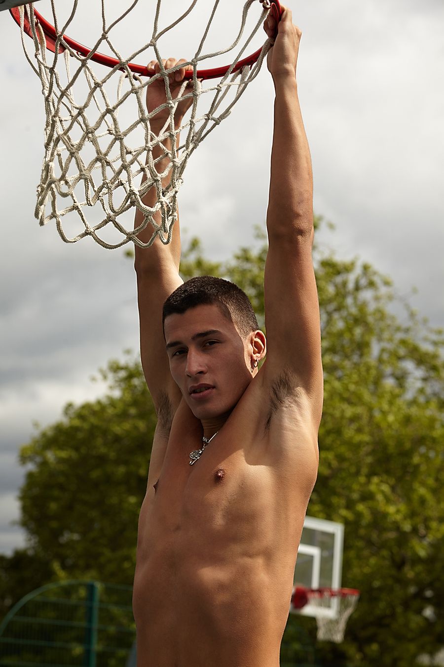 Photographer Karl Slater shoots Thanos Adamopoulos in this KALTBLUT exclusive. Shoot in the iconic North London basketball park, while taking a moment to enjoy the rare patches of sun we get in London. Thanos wears Adidas Originals, 9N1M SENSE, Puma, Nike and more.