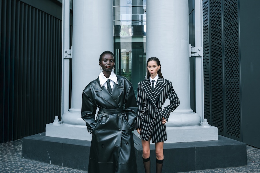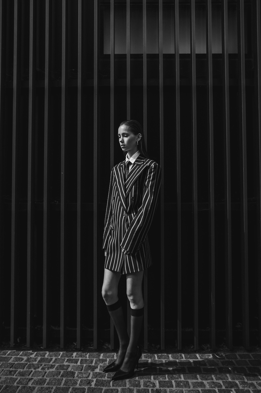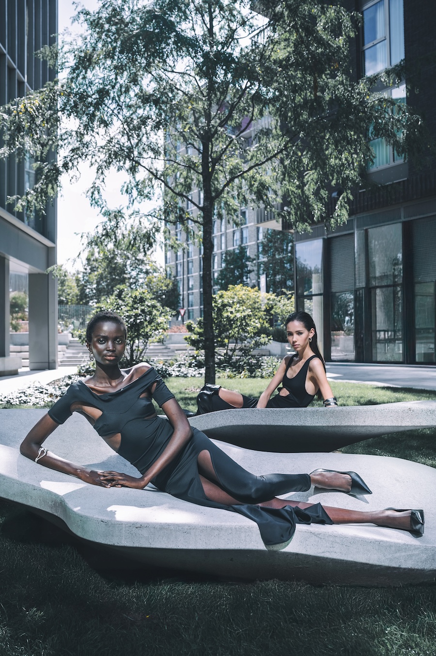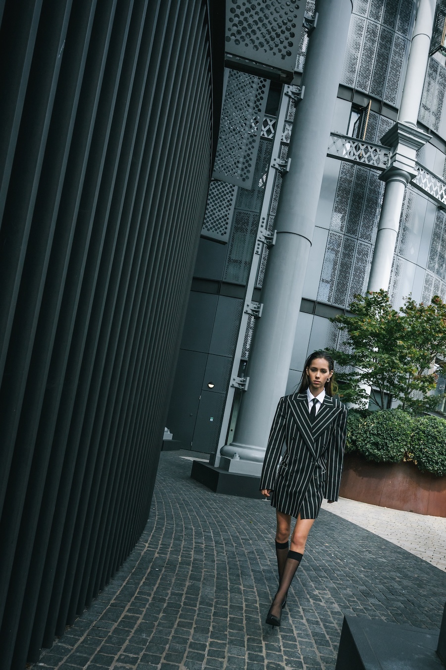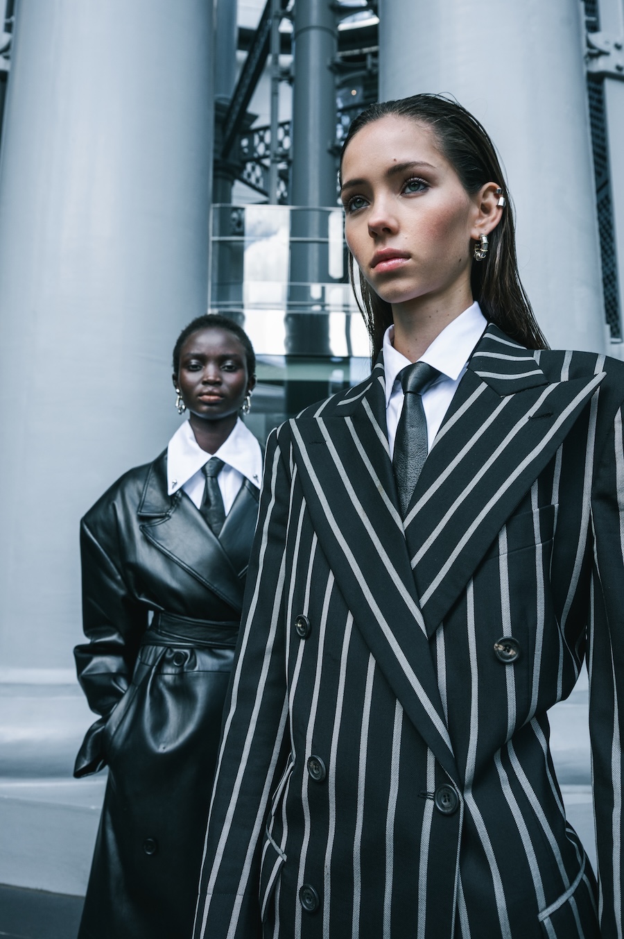 Gareth Valentino, the Art Director and stylist of the shoot, is Irish-born and London-based, carving a bold path in the world of fashion styling. His work delves into the charged space between masculine and feminine, reimagining power dressing for women with sharp tailoring, sensual contrasts, and an unwavering devotion to black, his colour of choice, his statement of strength. Claire Hebert is a fashion photographer known for her dynamic style and bold visual storytelling. Her work channels strength and power, creating high-end, impactful images that leave a lasting impression.