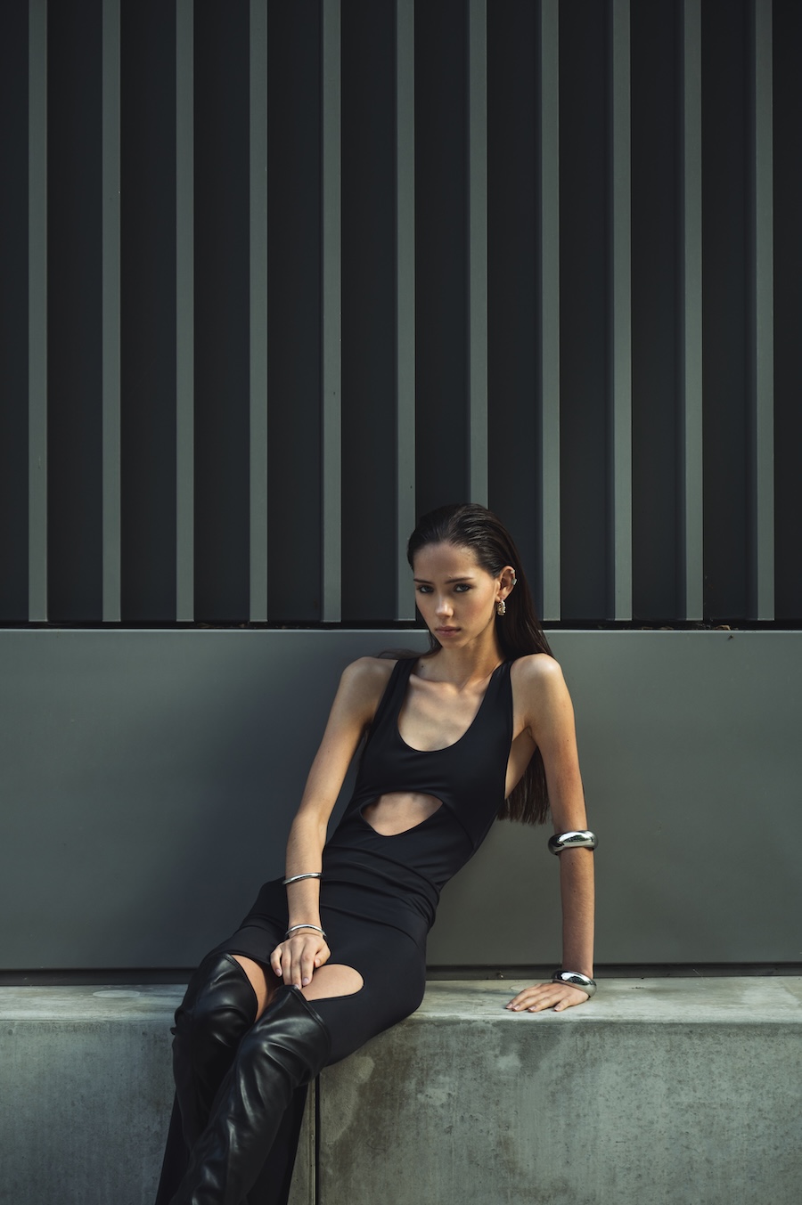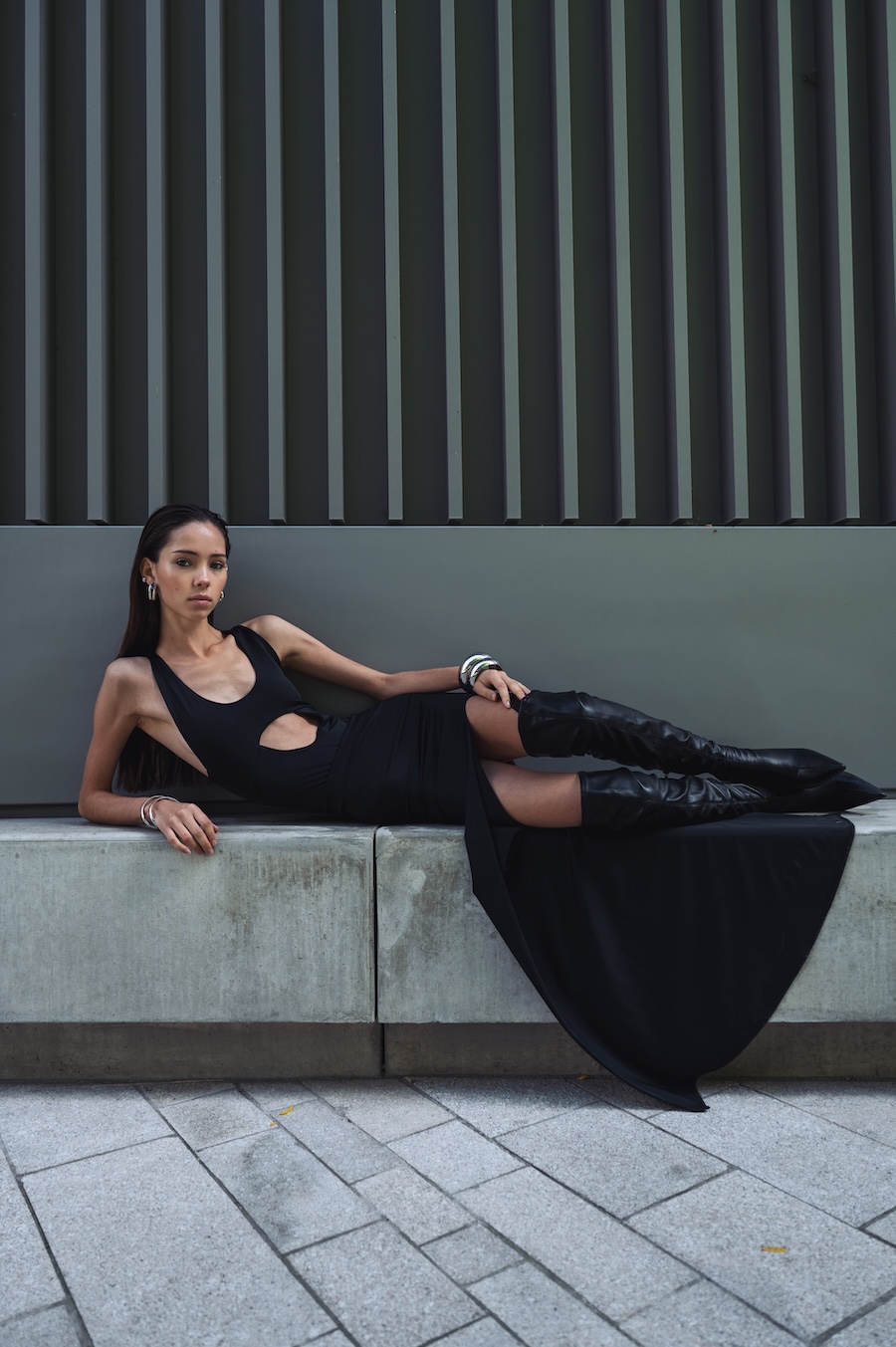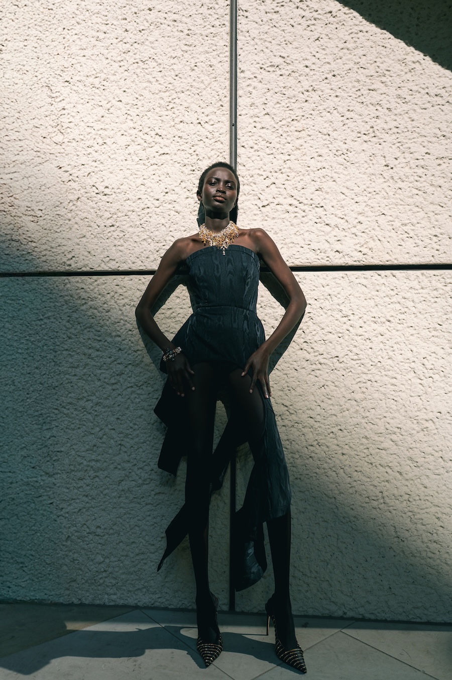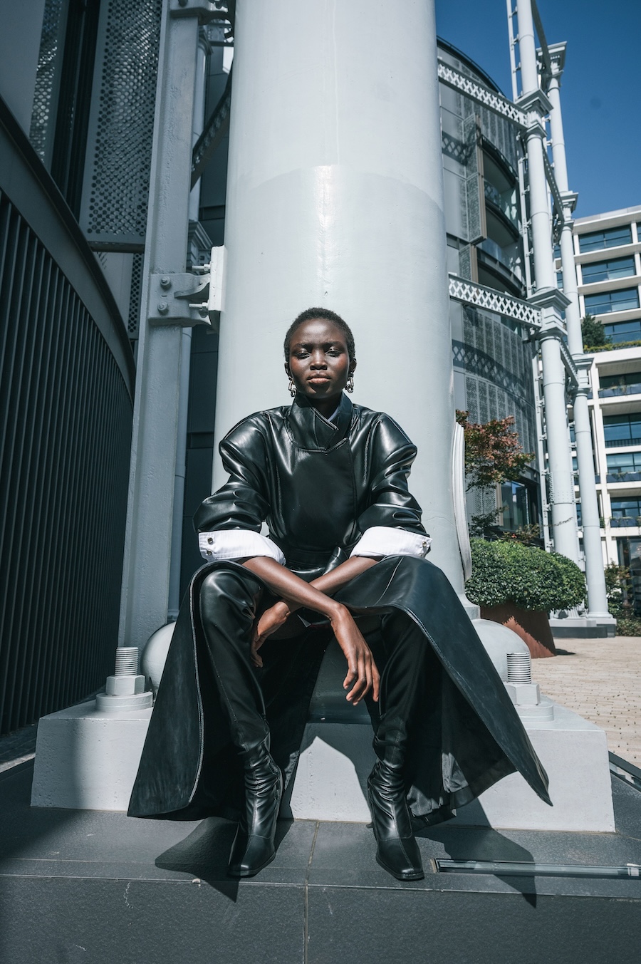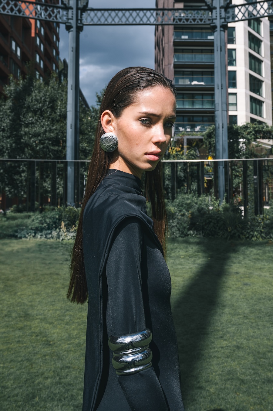 Gareth Valentino, the Art Director and stylist of the shoot, is Irish-born and London-based, carving a bold path in the world of fashion styling. His work delves into the charged space between masculine and feminine, reimagining power dressing for women with sharp tailoring, sensual contrasts, and an unwavering devotion to black, his colour of choice, his statement of strength. Claire Hebert is a fashion photographer known for her dynamic style and bold visual storytelling. Her work channels strength and power, creating high-end, impactful images that leave a lasting impression.