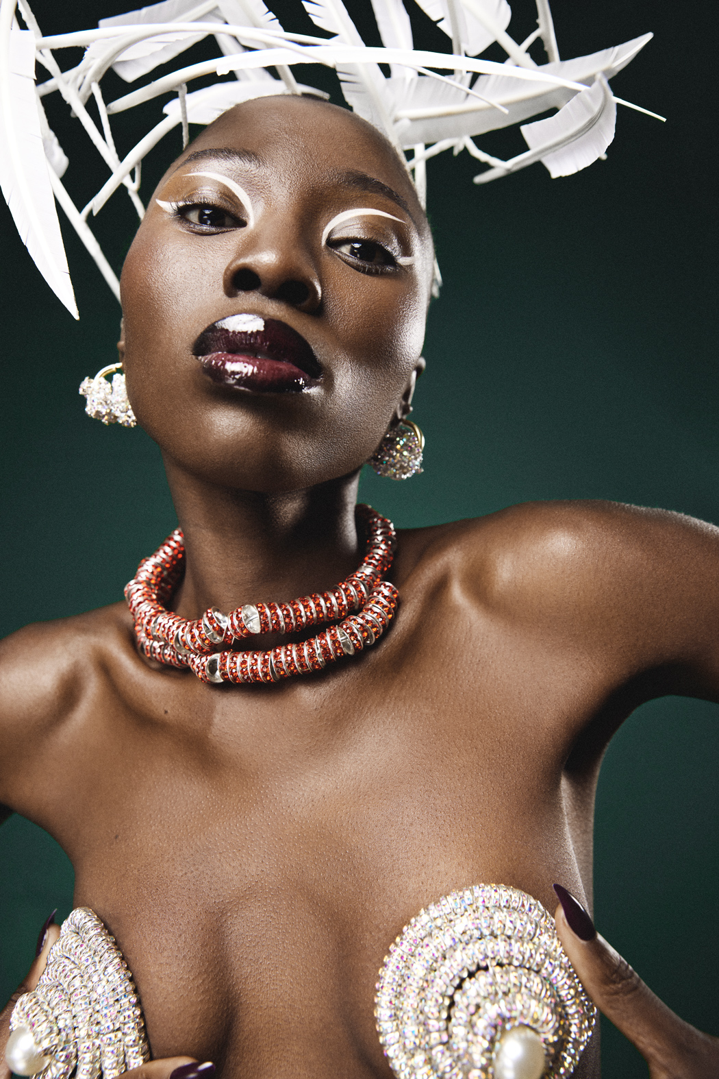 A KALTBLUT exclusive. Photography by Emma Sukalic. Creative Direction and Styling by Adam Duong. Hair and Makeup by Malin Wallin. The model is Haddy Ceesay. Retouching by Gonzalo Ponce. The fashion brands used are Gerd Holth, Tarinii, and Pearl Octopuss.y, RAR.e Studio, FLESH, Envelope1976, Diawéne, MyMuse Lingerie, Moniker Oslo, Ina Haeselich, Baum und Pferdgarten, Serena, Alessandra Rich, Isabel Marant, Magda Butrym, Paris Texas, Remain by Birger Christensen, Rotate, The Andamane, and stylist’s archive.