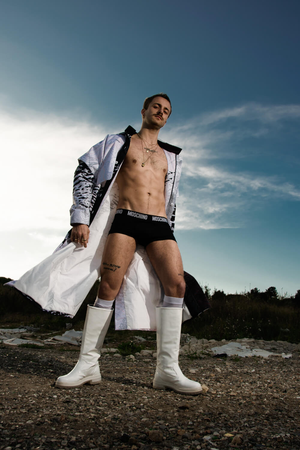We talk about male sensuality and masculinity. Security and pride of feeling sexy. In this case, using body and fashion as a way of expression. Freedom and encouragement to love yourself.