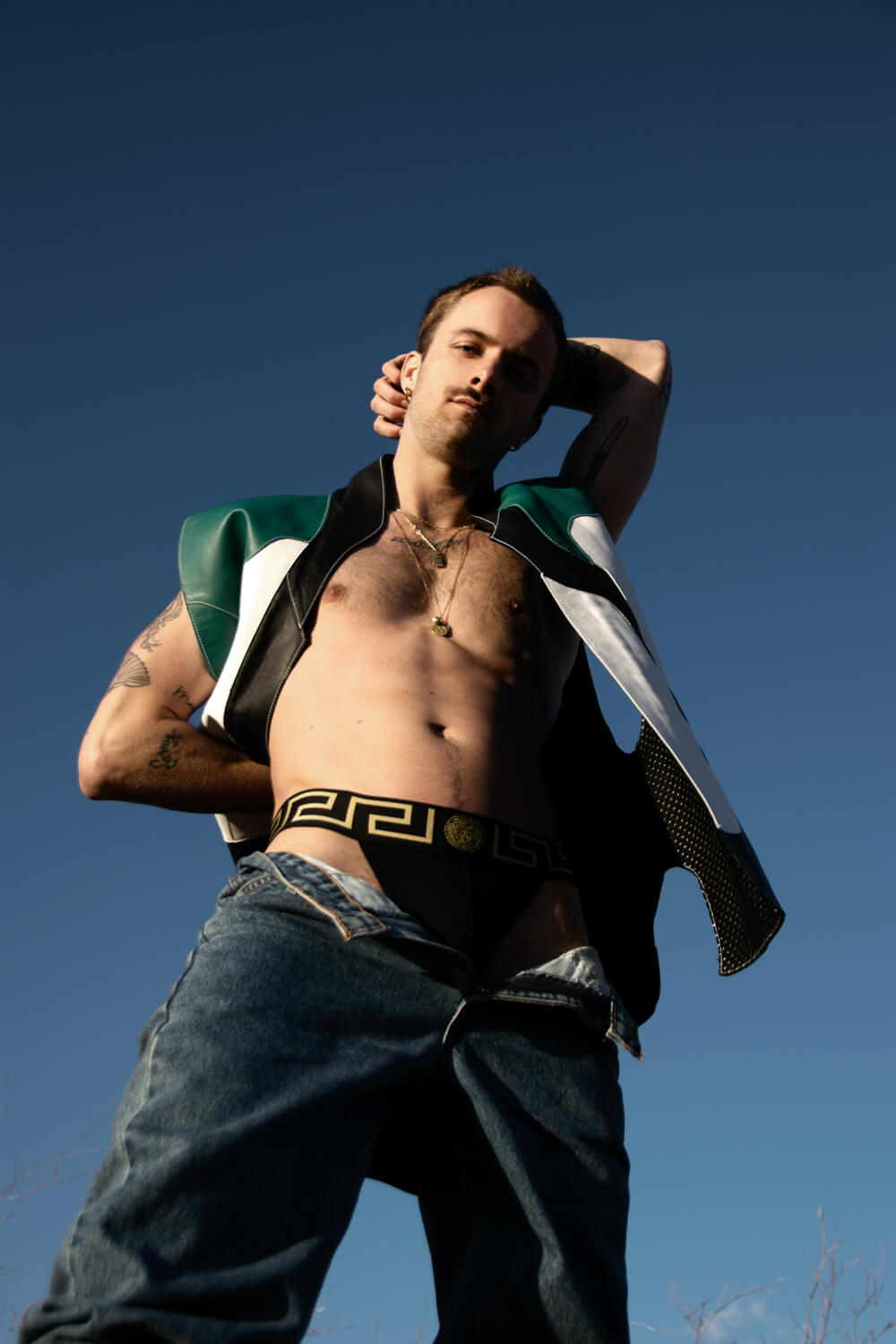 We talk about male sensuality and masculinity. Security and pride of feeling sexy. In this case, using body and fashion as a way of expression. Freedom and encouragement to love yourself.