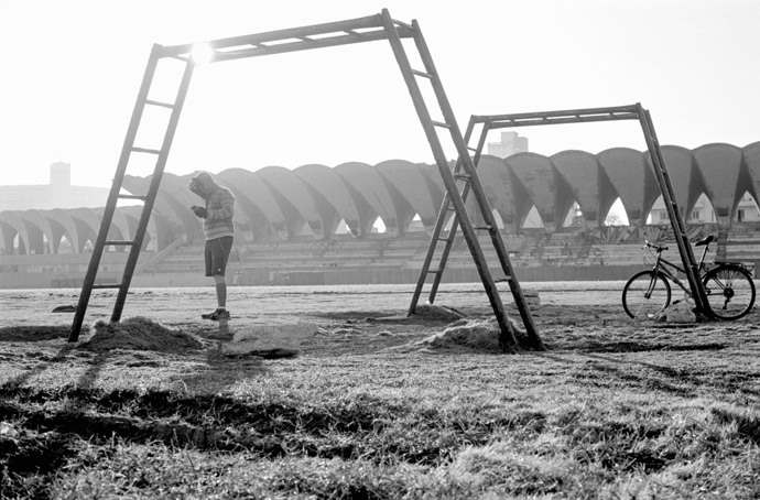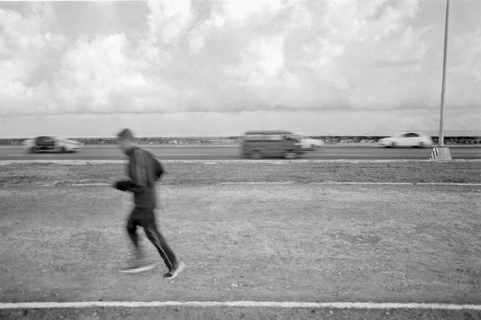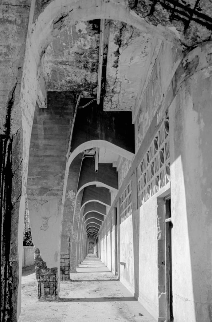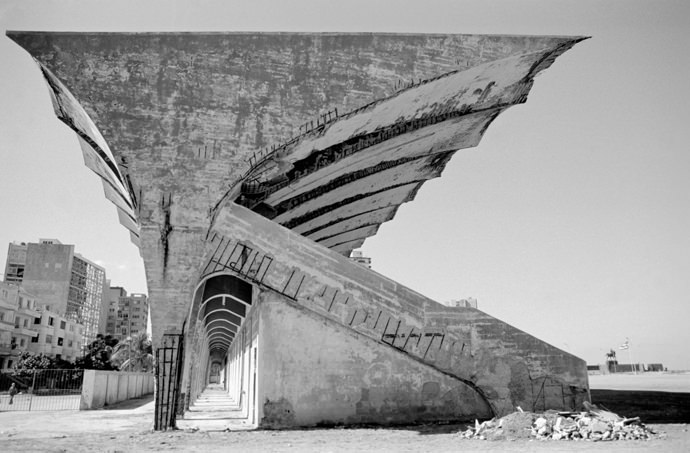 “”Ojo derrumbe” was the first thing I knew about Parque Deportivo José Martí- it is crumbling. The towering stadium structure, the distinctive architectural piece that makes the sports center recognizable from afar, is deteriorating piece by piece. The remarkable juxtaposition of the beauty in the architecture and the extreme corrosion of the stadium emulates the charm and vivacity throughout the sports center and history of sports in Cuba as a whole. During the revolution, Fidel Castro promoted sports as “the right of the people,” giving the public access to sports clubs and centers at no cost. The ability to incorporate sports into their daily lives symbolized the success of the revolution and sense of national pride in the Cuban people. The importance of sports in the Cuban culture is emulated throughout Parque Deportivo José Martí as it is constantly filled with many different people-young boys playing baseball alongside an organized soccer game while runners circle the track around them. This series aims to explore the relation of the beauty and vitality of the crumbling architecture of Parque Deportivo José Martí.”