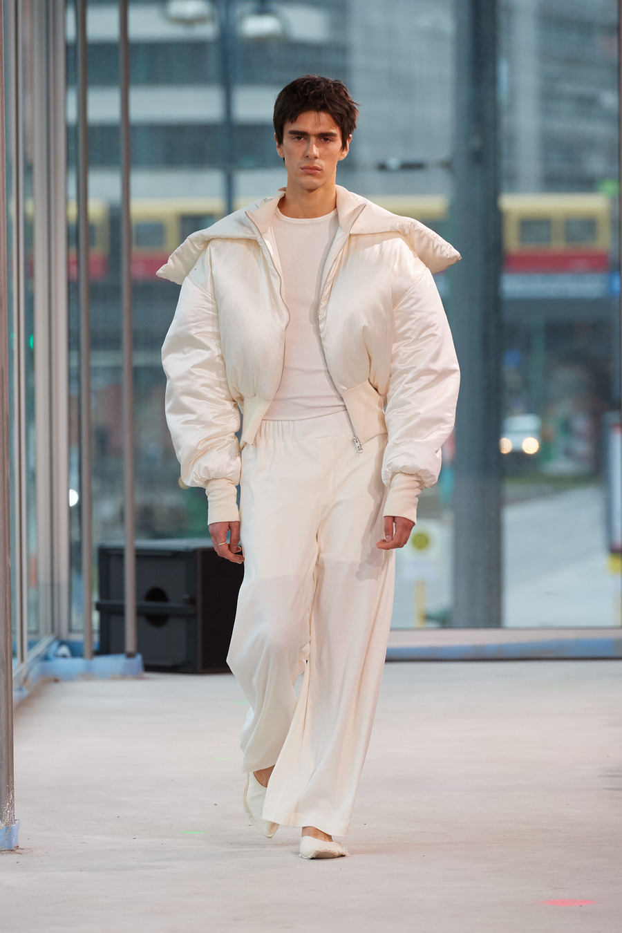 Under the minimalist melodies of a live orchestration, the sanctuary of Olivia Ballard’s creativity was unfurled within the contemporary corridors of the NEWEST Showspace – a fitting temple for an intimate conversation between fabric and flesh, staged unavoidably at the very heart of Berlin’s fashion vanguard.