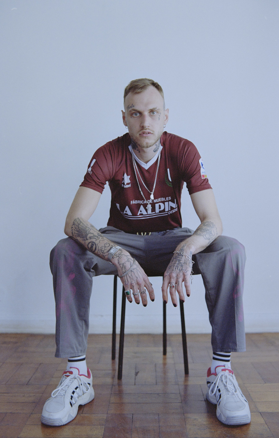 A KALTBLUT exclusive. Photography by Guillermo Calderón. The models are Michele and Papi Ruso. Styling by Camila Duque. Brands used are Adidas Originals, Lacoste, Kappa, and Luanvi. Guillermo Calderón is a photographer based in Santiago de Chile. Specialized in portraits, fashion editorials, documentary projects, and work with historical photographic archives.