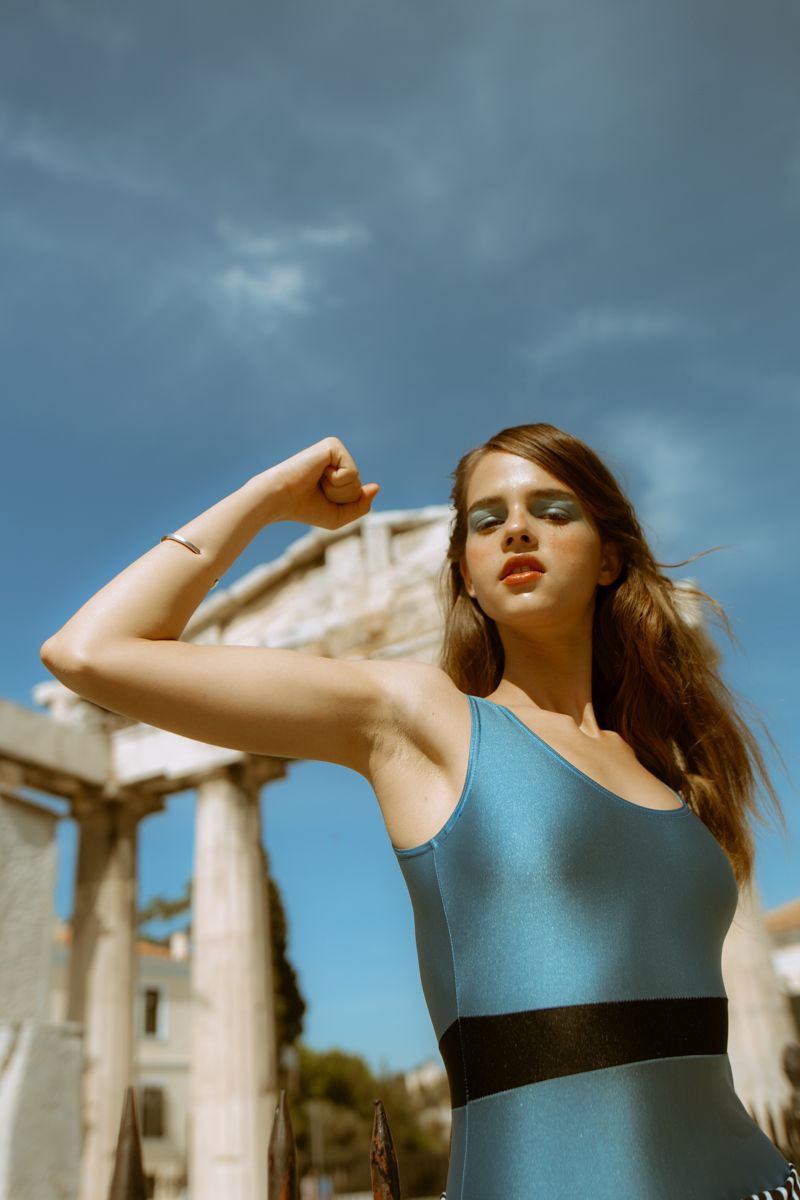 A KALTBLUT exclusive. Photography by Arianna Genghini. Styling by Ari Frias using Vintage Swimsuits and Jewelry by Gina Melosi Jewellery (at AA-Collected), Art direction by Sofia Girelli. Models are Athanasia Palla signed at Ace Models Greece and Alexandros Bagkis signed at Ace Models Greece. Makeup by Daisy Hasiung. Hair by Janis Bekkering. “I’m an emerging fashion photographer of 23yo based in Milan. I’m graduated in fashion design one year ago and since then I enrolled in a Master course about fashion photography (which I’m still attending). I would describe my work as Lo-Fi, edgy and romantic. I love imperfections, weird perspectives, storytelling whitin the images, film photography and vintage vibes. I portray youth and beauty in the fashion and portraiture field. I prefer shooting in location, because it inspires me much more than shooting in studio with boundaries of lighting and space. Freedom of expression, the unconventional and a girly point of view are the main concepts driving my photography.” says Arianna Genghini.