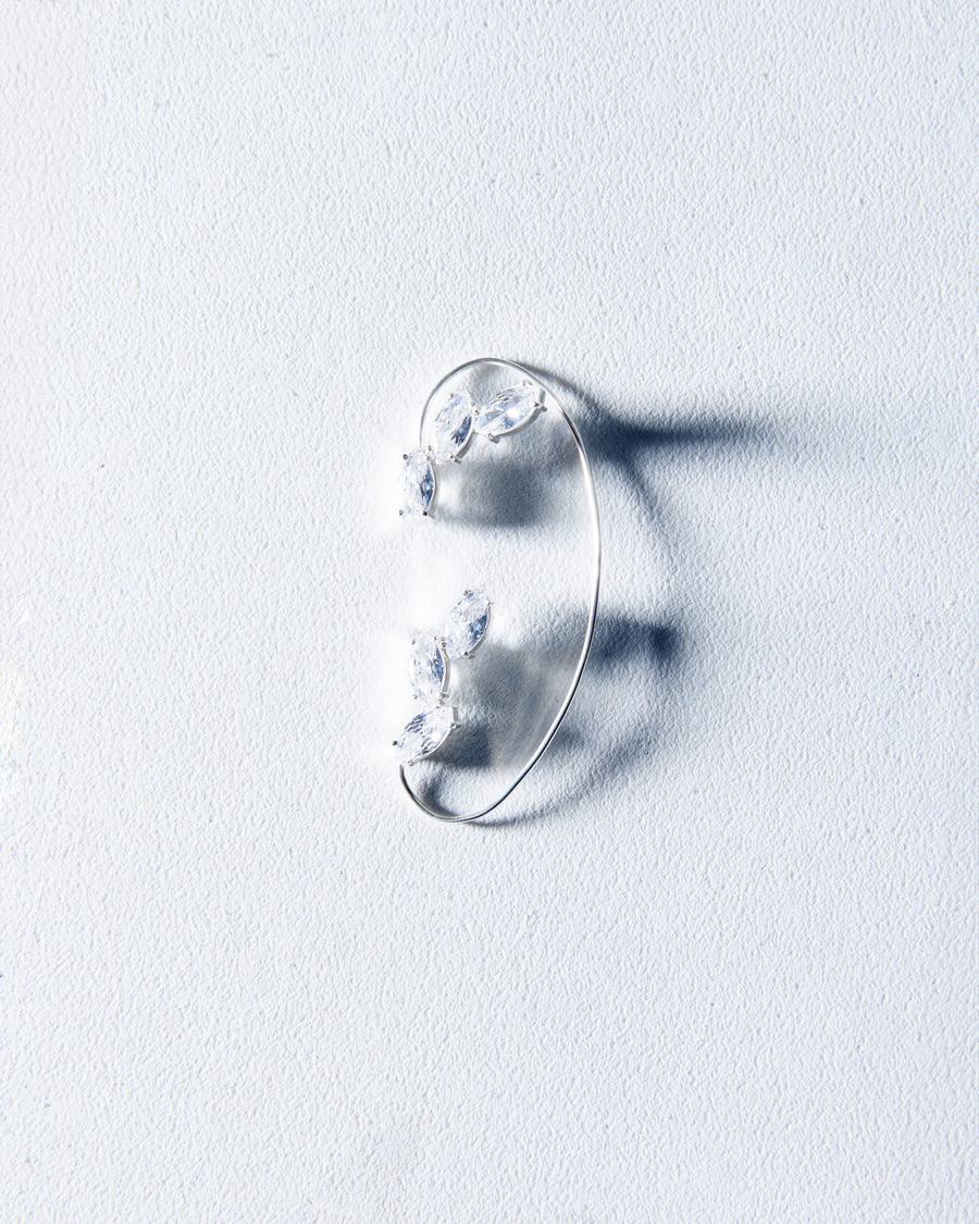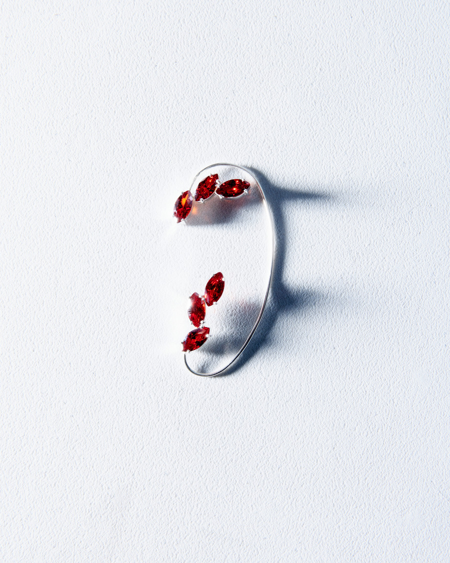 According to the designer, the inspiration for the cuff was a serendipitous amalgamation of editorial experimentation and customer demand. Initially conceived as a response to client requests stemming from an editorial photo, the cuff epitomizes the harmonious fusion of form and function. “What started as an impromptu adornment with gemstones on a whim quickly gained traction when our clients expressed interest in purchasing what they believed to be an earring. It was then that I realized the undeniable appeal of the cuff, especially in the context of Valentine’s Day,” shared Omelia.