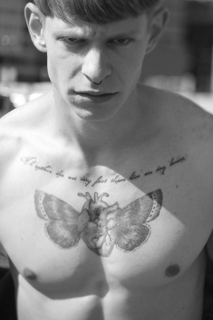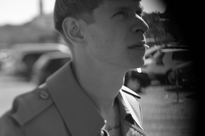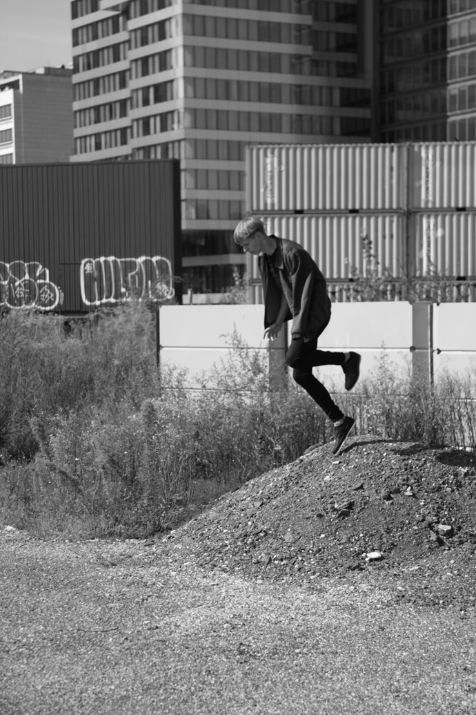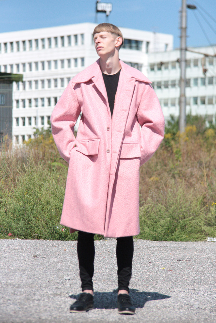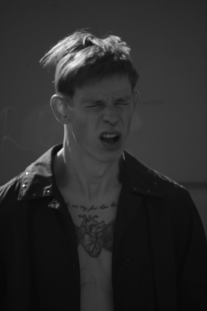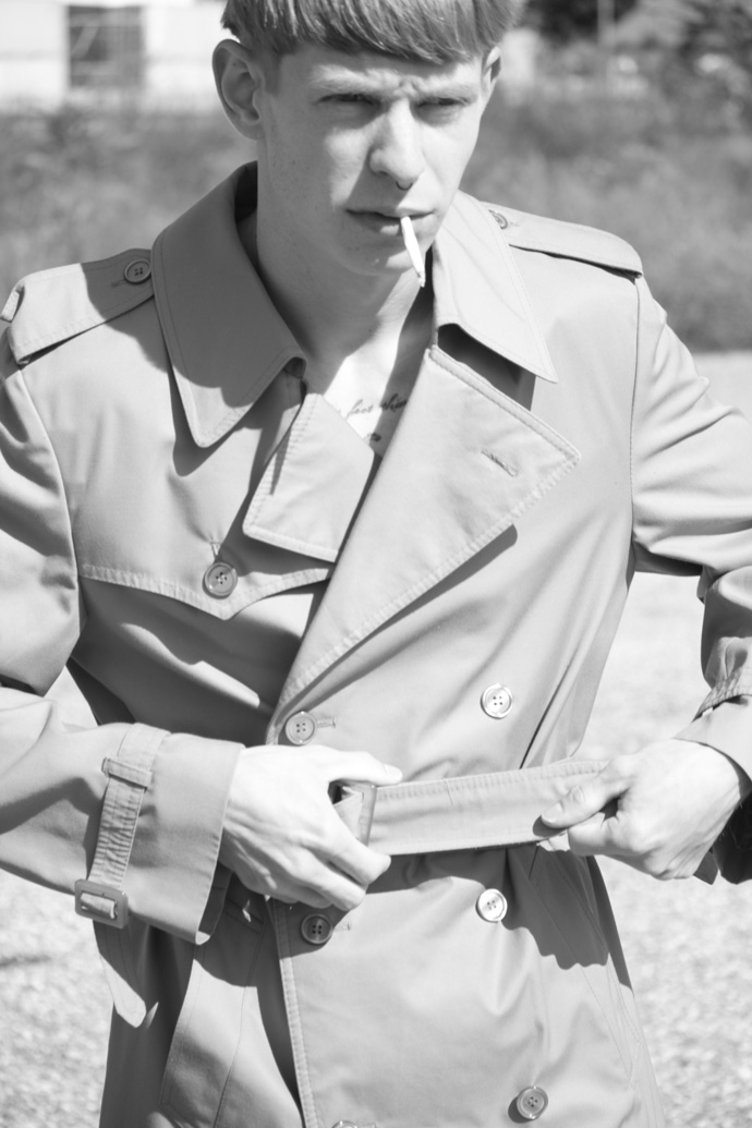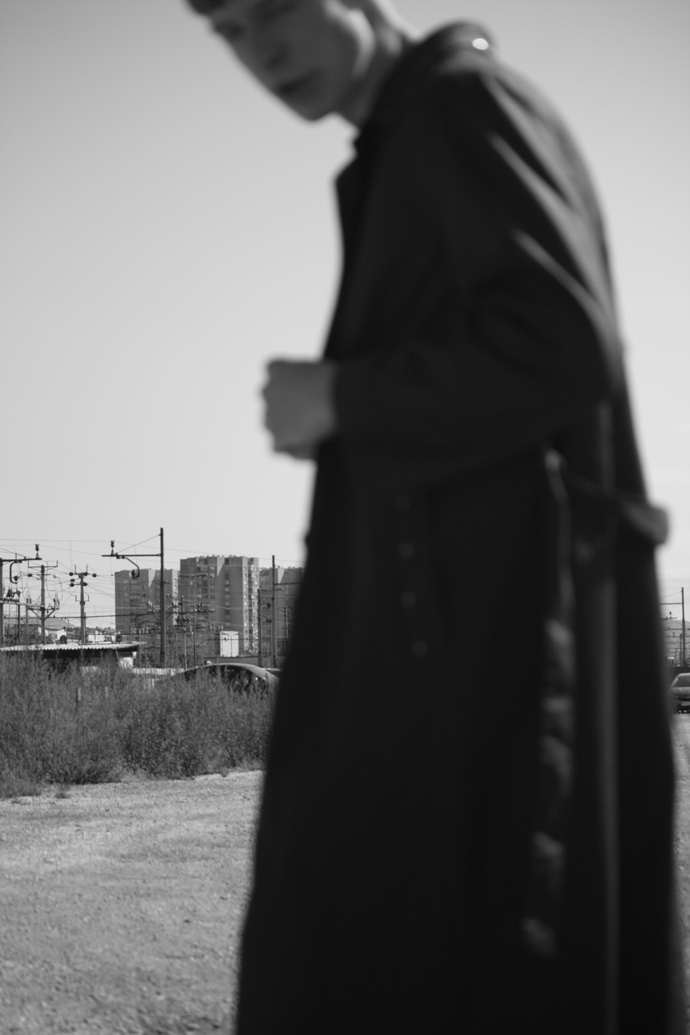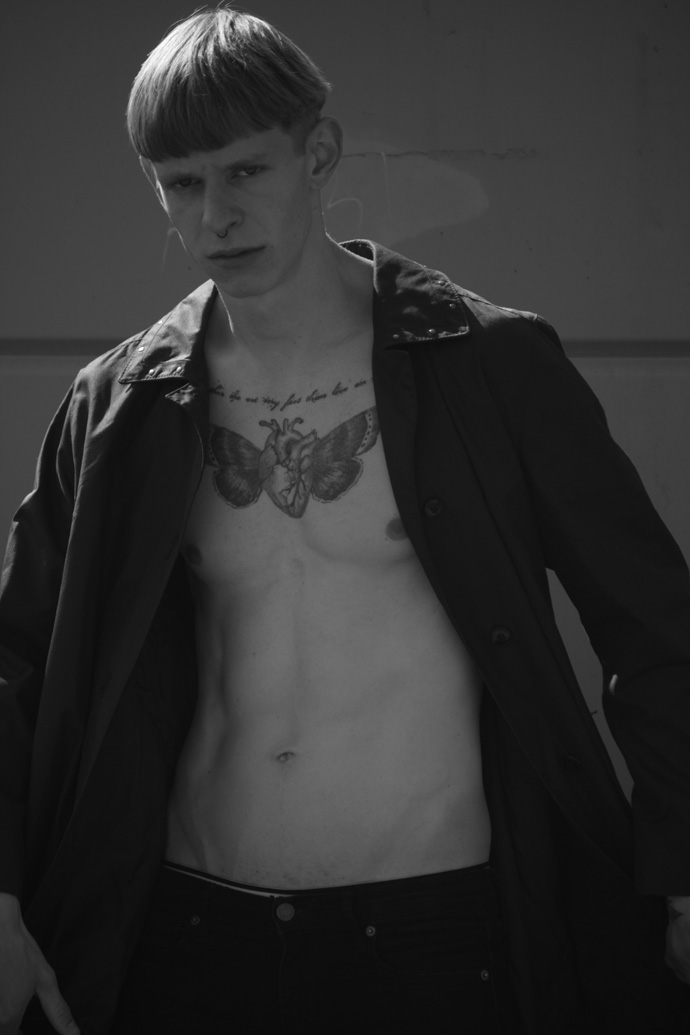 A KALTBLUT exclusive male model feature introducing Rok Vrečer signed at Haze Management and New Generation Model Management. Photography by Marijo Zupanov. Editor: Timi Letonja. Zupanov decided to do the photoshoot on this parking lot area that is placed right next to the main railway station of Ljubljana city. When you come out from the railway station you are faced right away with the grey fence surrounding the parking lot all around. When you enter it without a car you can soon realise the bizarre moment that there is. Parking lot is a flat ground macadam covered with some wild life plants growing wildly on its edges. All the fancy cars and a new hotel build recently on the opposite side of the road compliment to the bizarreness. Zupanov found the rawness of the model’s look fitting perfectly to this raw place on the edge of Ljubljana’s city centre.