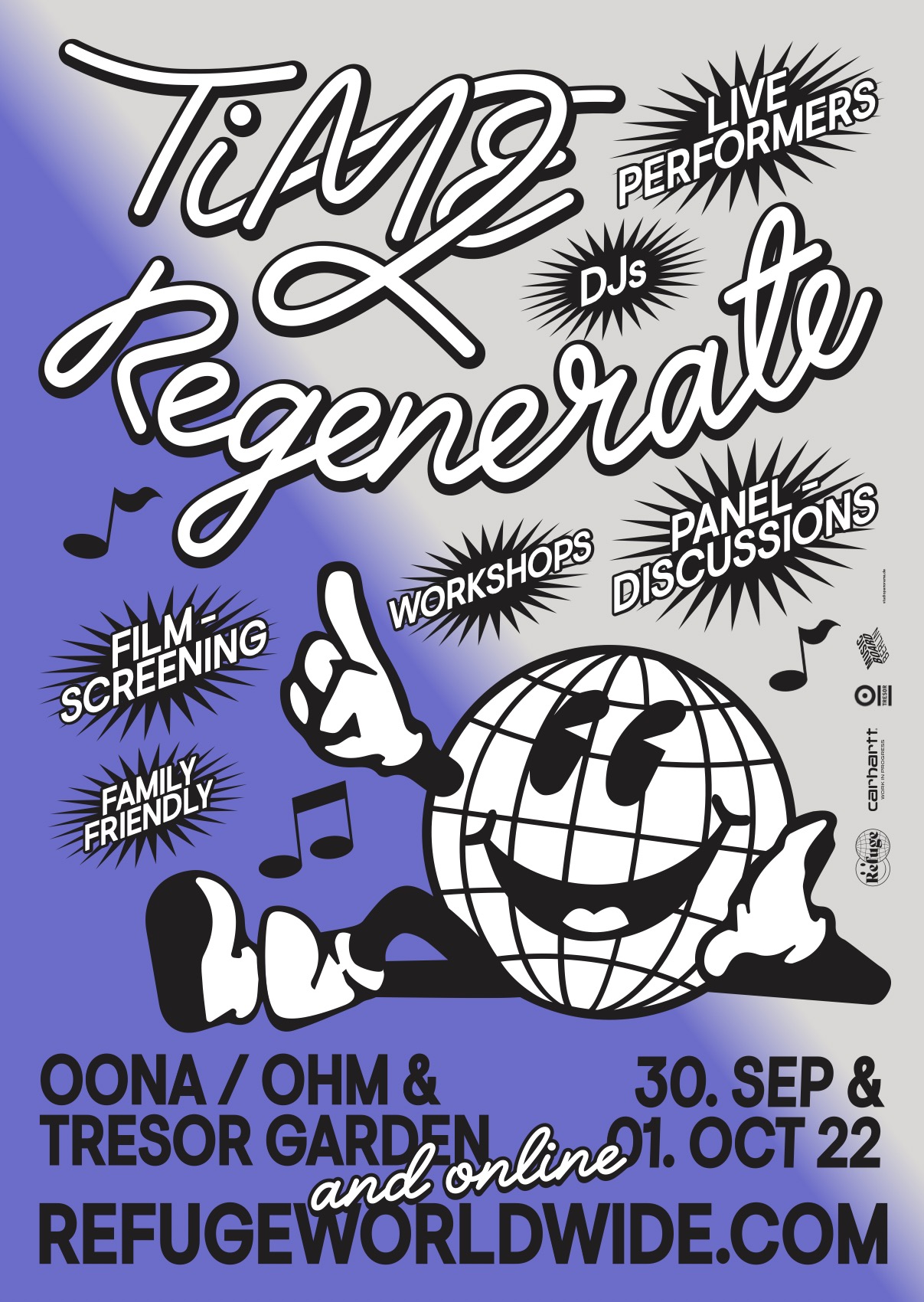The three-day event will start on Thursday 29th September at Carhartt WIP’s location in Berlin Mitte, where Refuge Worldwide will celebrate the launch of a new Regenerate Zine, Refuge Worldwide’s first printed magazine, as well as a limited edition long-sleeve shirt going on sale, produced in collaboration with Carhartt.