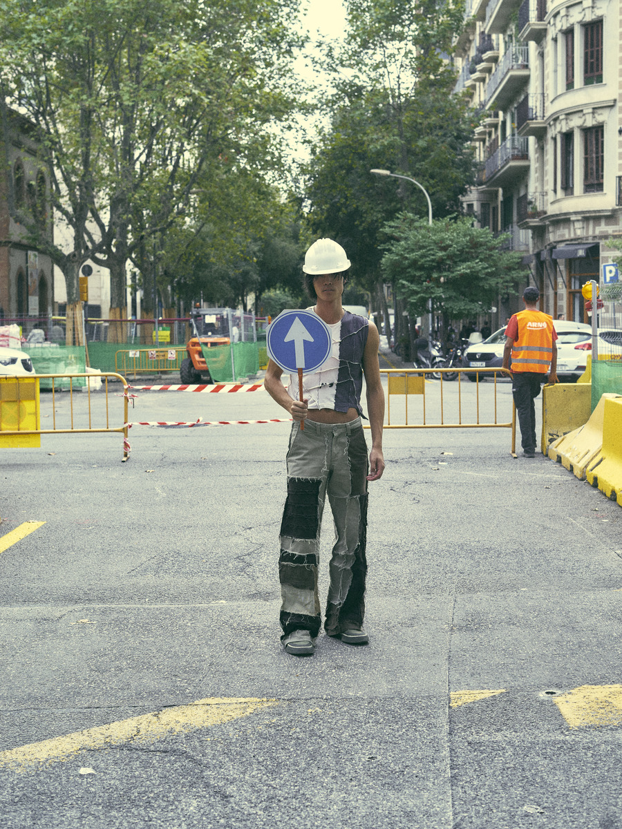 A KALTBLUT exclusive editorial. Photography by Jaime Perpinyà. The model is Sergi Shan. The creative director and stylist is Juan Valentin-Gmamazo. Fashion by JUAN VG. “We recreate everyday scenarios, for you to know upcycling clothes are not just for special occasions, but to wear them in our daily life, to go for a beer, take a walk, go shopping, be with friends, and much more”