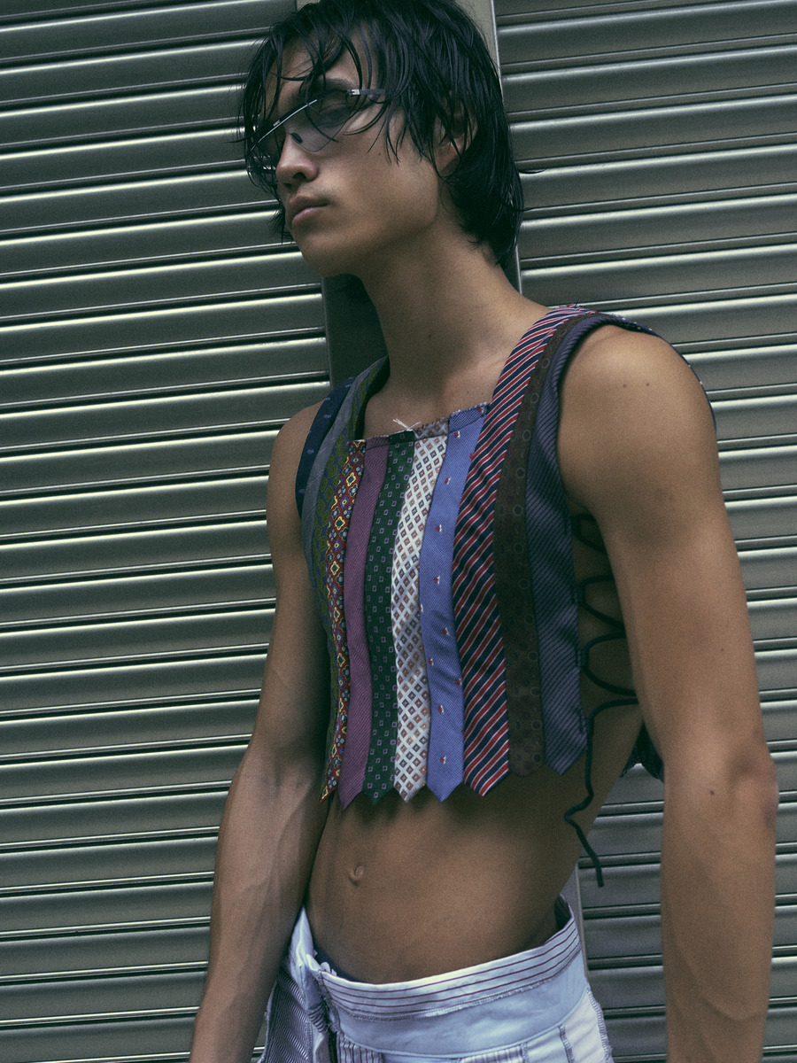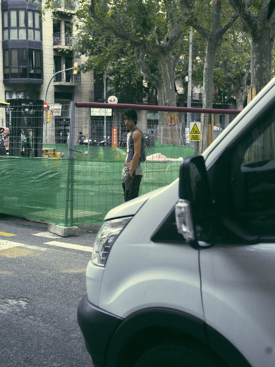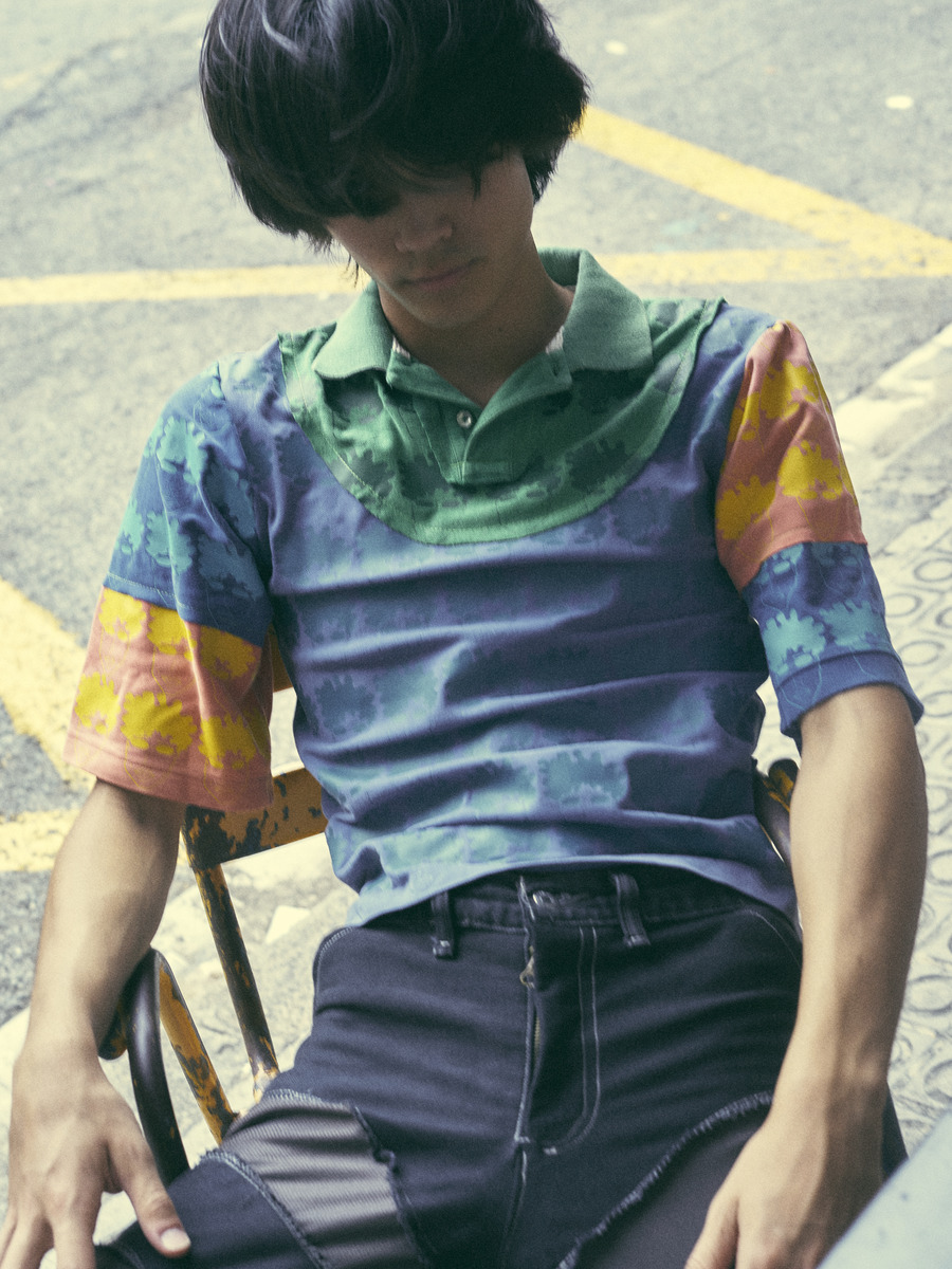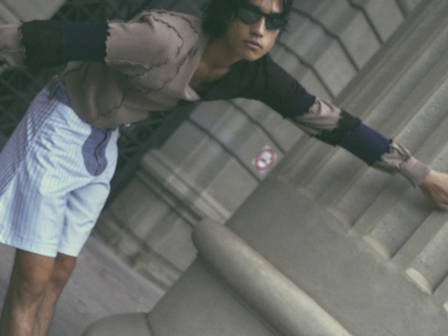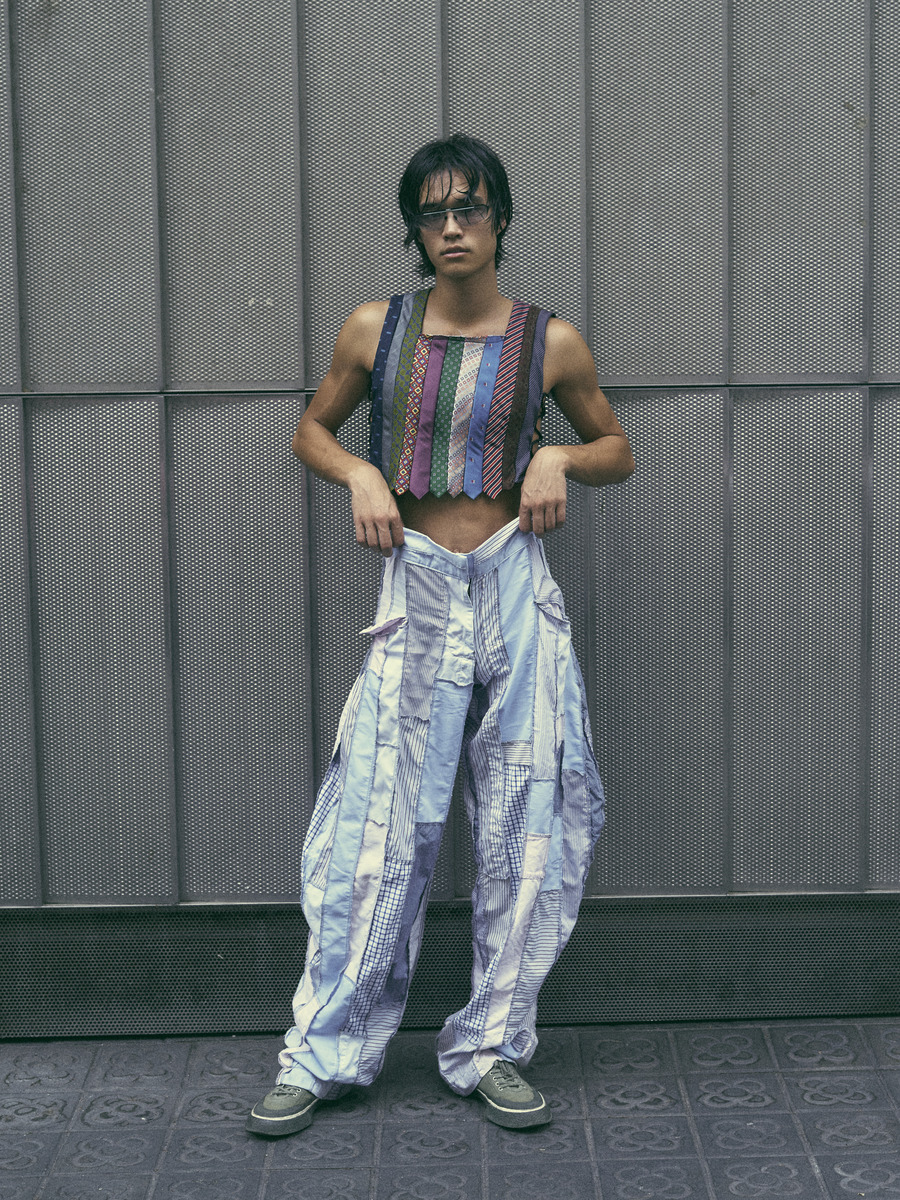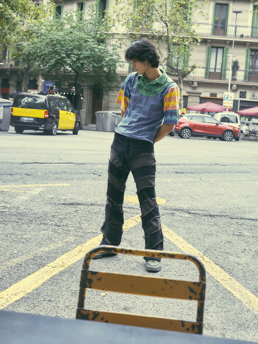 A KALTBLUT exclusive editorial. Photography by Jaime Perpinyà. The model is Sergi Shan. The creative director and stylist is Juan Valentin-Gmamazo. Fashion by JUAN VG. “We recreate everyday scenarios, for you to know upcycling clothes are not just for special occasions, but to wear them in our daily life, to go for a beer, take a walk, go shopping, be with friends, and much more”