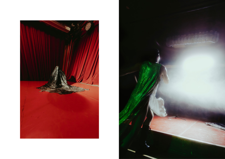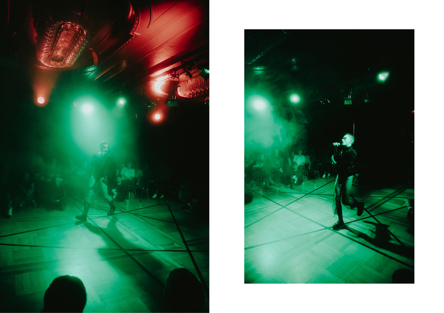 A big black pentagram lies on the floor of the Roter Salon (Red Room) of Volksbühne, the renowned theatre of Berlin. The quote-unquote cool Berlin crowd is confused and stays away from the stage to respect the star, so as not to step on it.