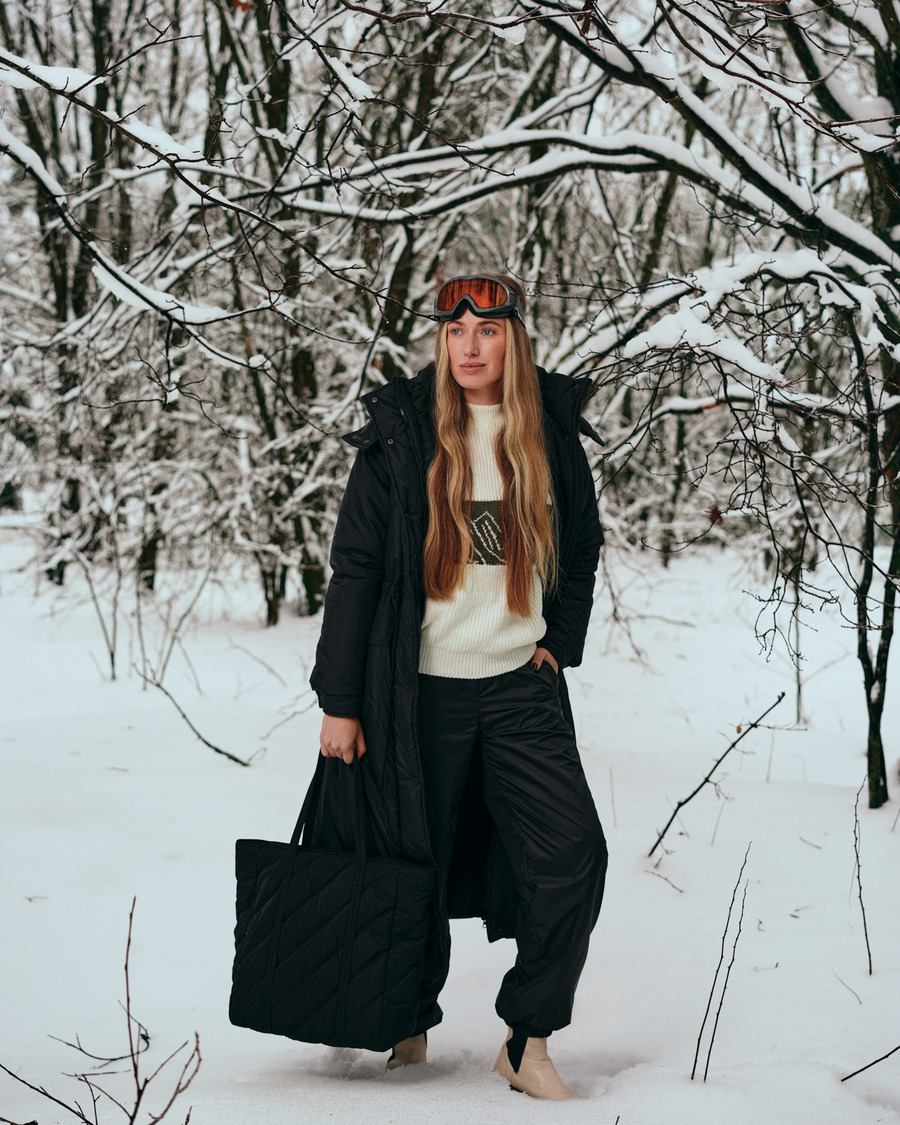 The campaign shooting confirms that these are clothes for the brave and strong. The team led by photographer and art director Denys Manokha went to the snowy forest to express the essential mood and test the capsule live. ‘Shooting in the snow, at -2 °С, after the most massive missile attack on the Kyiv region and in a complete blackout? Why not?’- Irina Galay smiles.