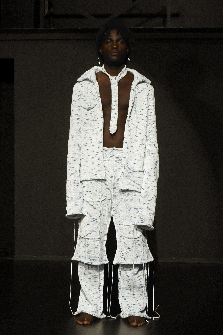 LARASEVERA, founded by the visionary designer Lara Severa, challenges conventions and redefines the perception of knitwear. What sets this brand apart is its ability to seamlessly blend timeless design with a modern understanding of silhouettes and shapes. Lara’s keen eye for magnifying the potential of knitted fabrics has resulted in a collection that transcends traditional notions of knitwear, offering a diverse range of unisex suits, coats, fine dresses, and accessories. The brand effortlessly combines the comfort we associate with knitwear, with a distinct contemporary edge. The Spring/Summer 2024 collection from LARASEVERA is a testament to the brand’s fearless approach to fashion. By fusing unisex ready-to-wear pieces with avant-garde all-black knit couture, Lara Severa demonstrates her audacious vision. Join us as we delve into the world of LARASEVERA, where tradition meets cutting-edge innovation, and where the limits of knitwear are shattered, giving birth to a new era in fashion. Take a front-row seat and prepare to be captivated by the magic woven with every stitch.