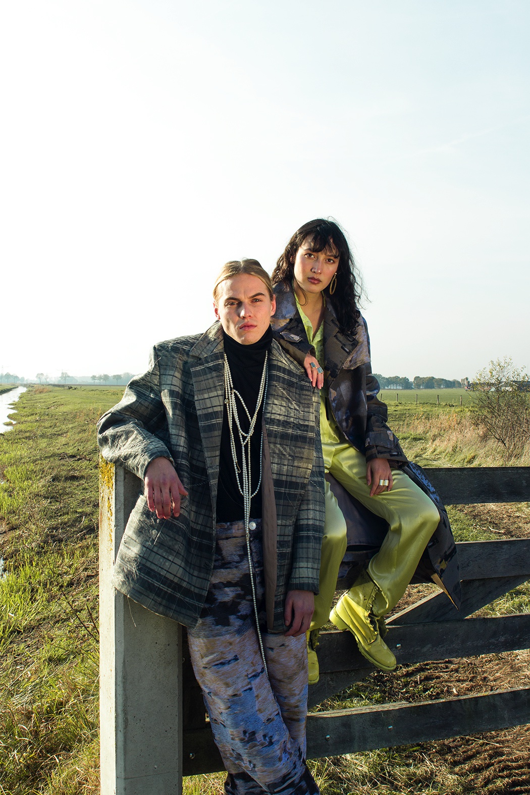 Introducing fashion designer Iris Bambacht with an exclusive fashion editorial. Photography by Femke Juffermans. Styling, concept and production by Amber Aste Creates. Makeup by Lisa Scheepers. Models are Kaan Walt and Iwa Saebu. All clothes by Iris Bambacht. Accessories are vintage or from the stylist.