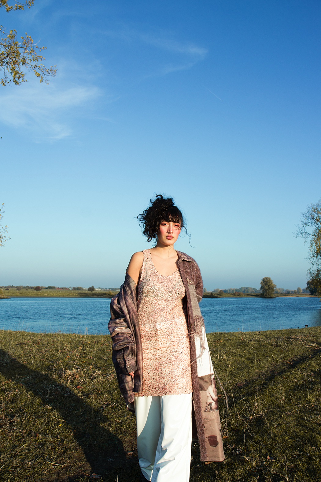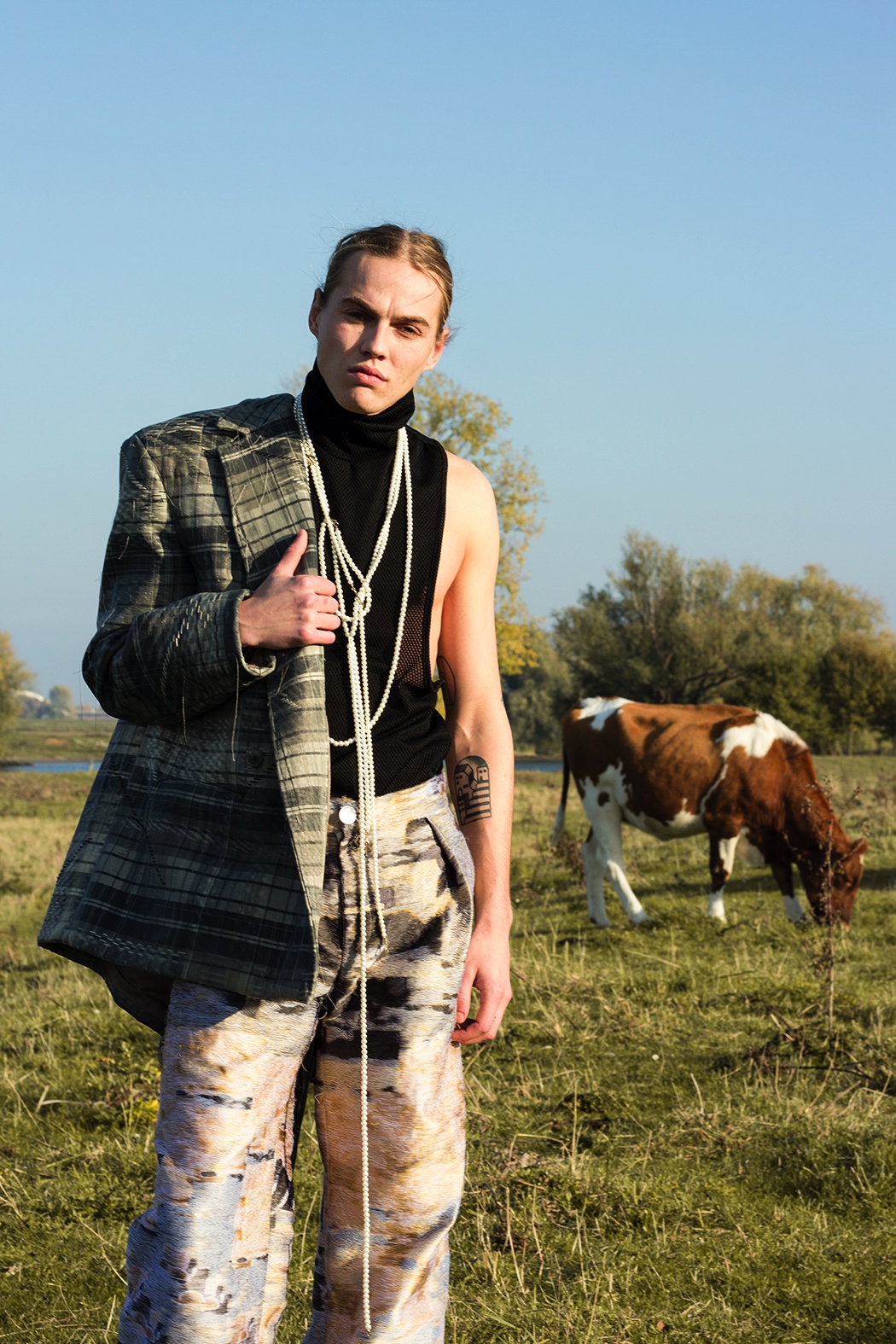 Designer Iris Bambacht has carried a passion for making clothes since her childhood. Whereas, at a younger age she was already sitting behind the sewing machine making clothes with help of her grandmother. During her studies at the ArtEZ University of the Arts, she quickly attained an obvious interest for textiles. This is often the starting point of her unique collections, which reveal a true passion for craftsmanship with a reference to nostalgic means. Her graduation collection is a menswear haute couture story, inspired by her heritage and love for materials and structures. This is a personal topic of great importance to Iris. Each outfit portrays a certain memory inspired by old family pictures to which she connected different materials to merge two worlds together. All the clothes she made are inspired by the pictures and the small village she grew up to create a homage for her heritage.