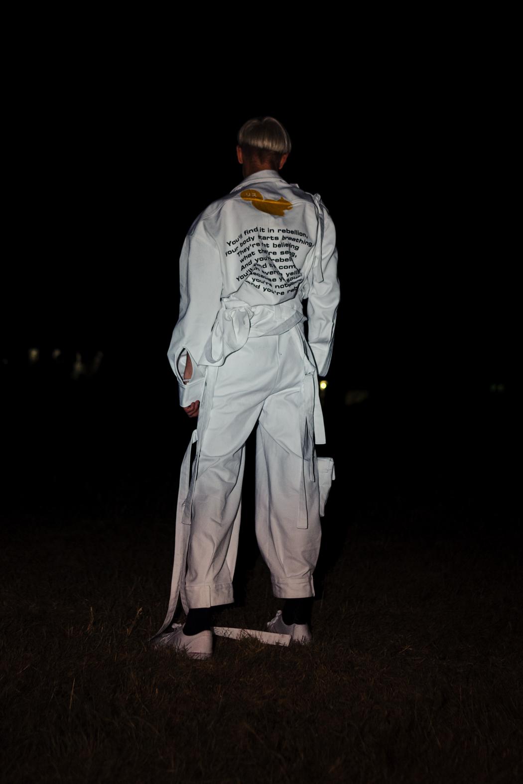 Marcel: For me, Fashion is the easiest, most flexible way to express my statements. It can be the most striking form of expression without the need for any verbal acts. It’s not my intention to primarily create a certain aesthetic, rather then my aspiration is to tell a story through my work. I enjoy the process and the time to create a new collection which can give viewers and carrier their own space of interpretation. A mobile canvas, whose message can be carried into the world. It only lingers on a spot for a short time and moves like a shadow of people beyond all borders.